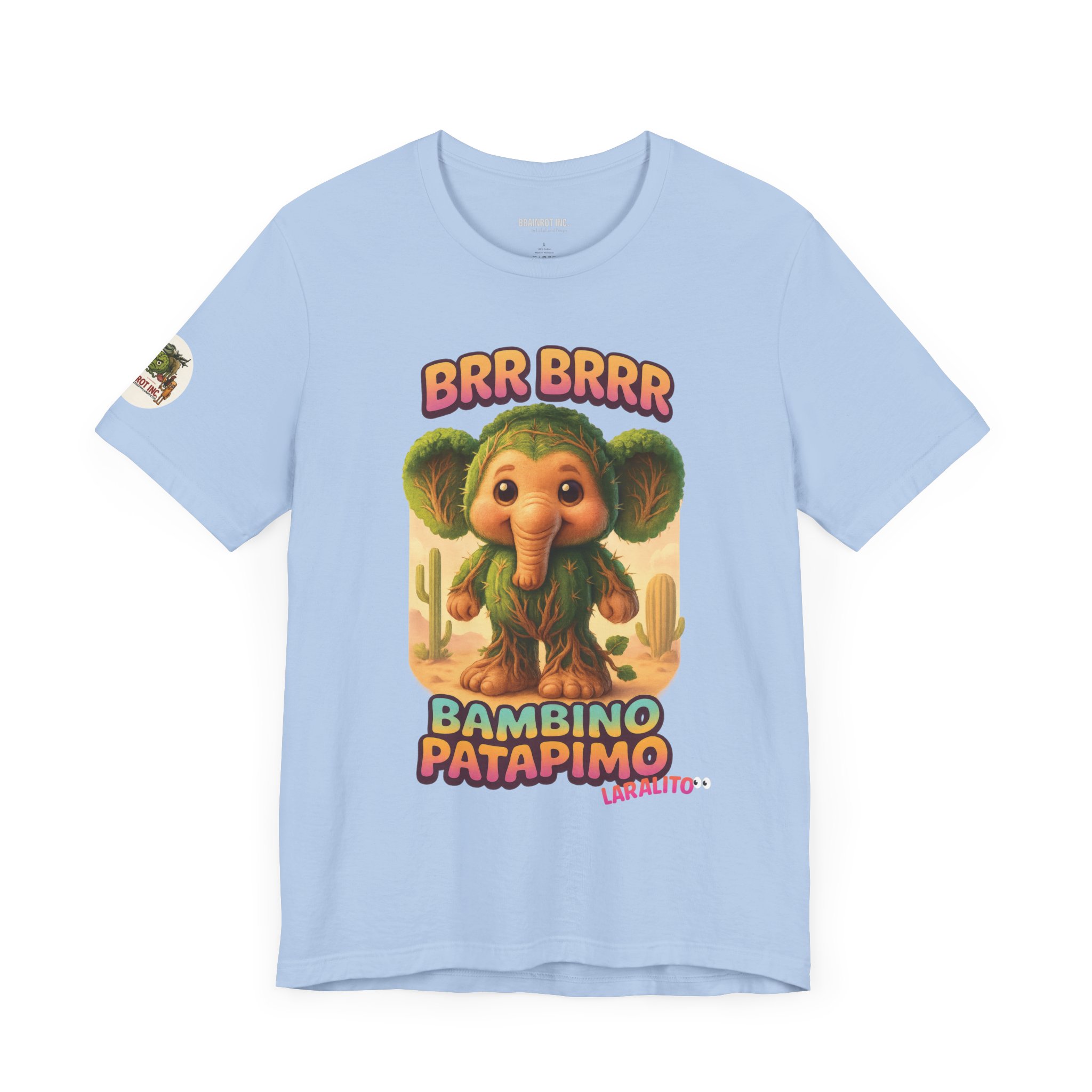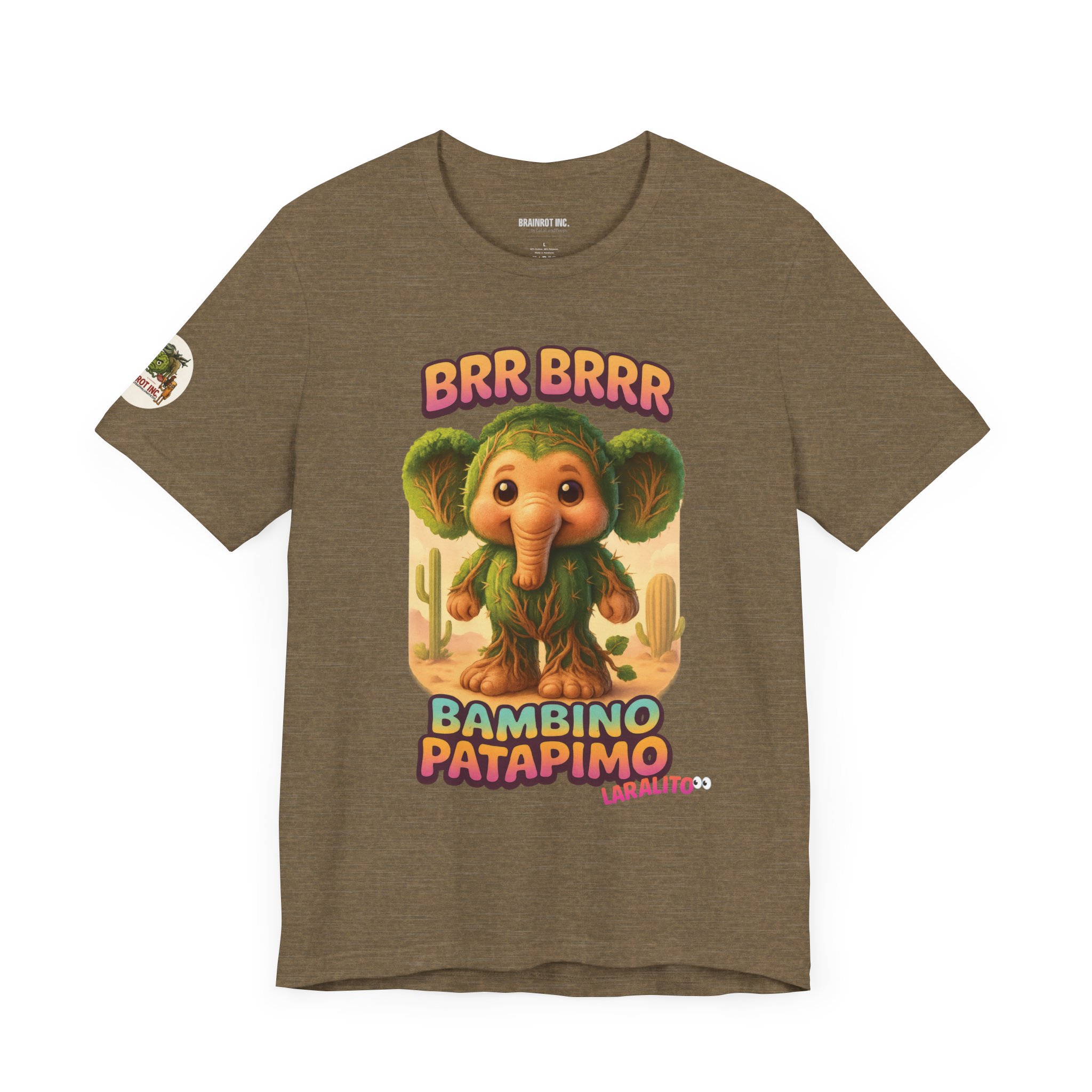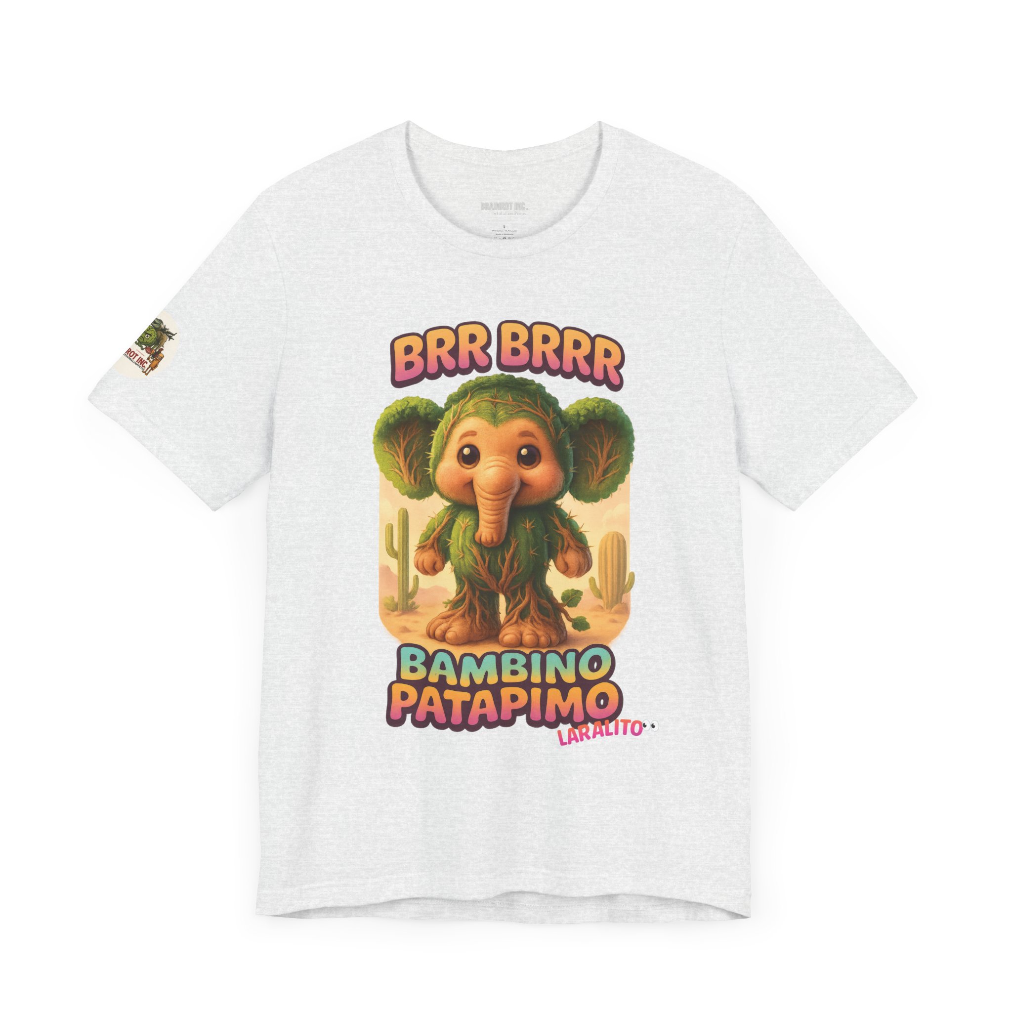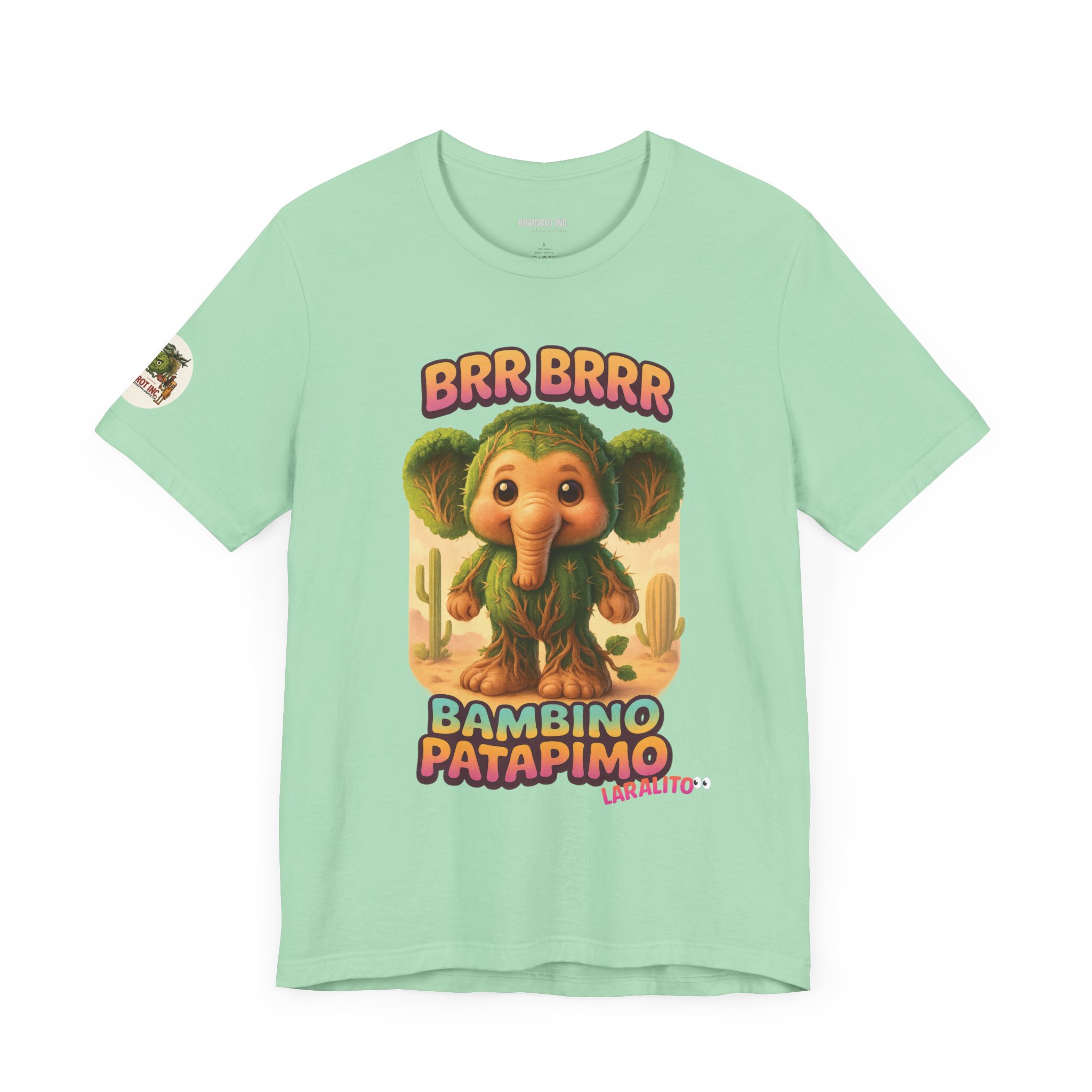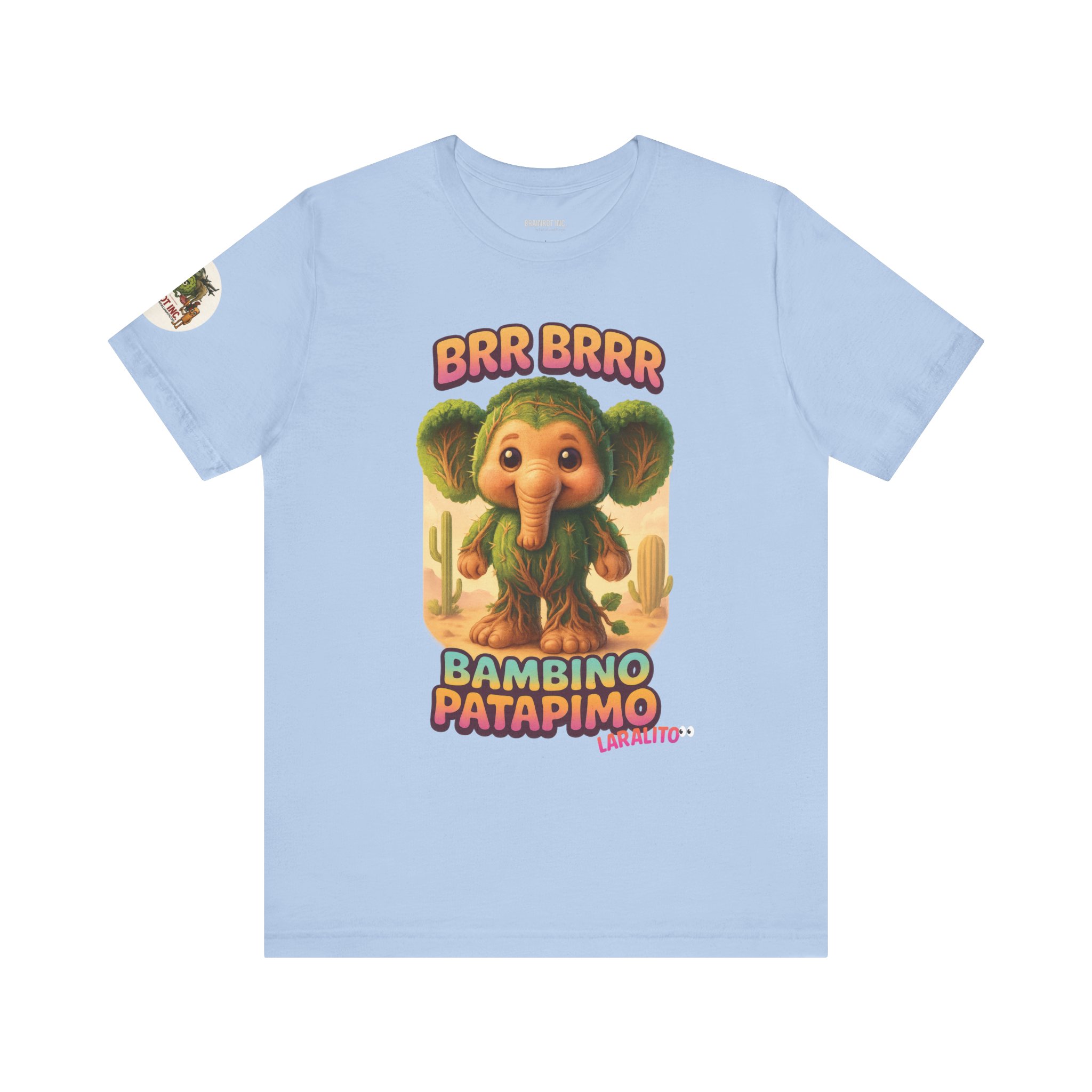 Now reborn as BAMBINO PATAPIMO, this time-warped desert elephant-cactus hybrid patrols the sand realms in a wooden sandal, spreading joy and BRR BRRR sounds to all who dare sleep in.