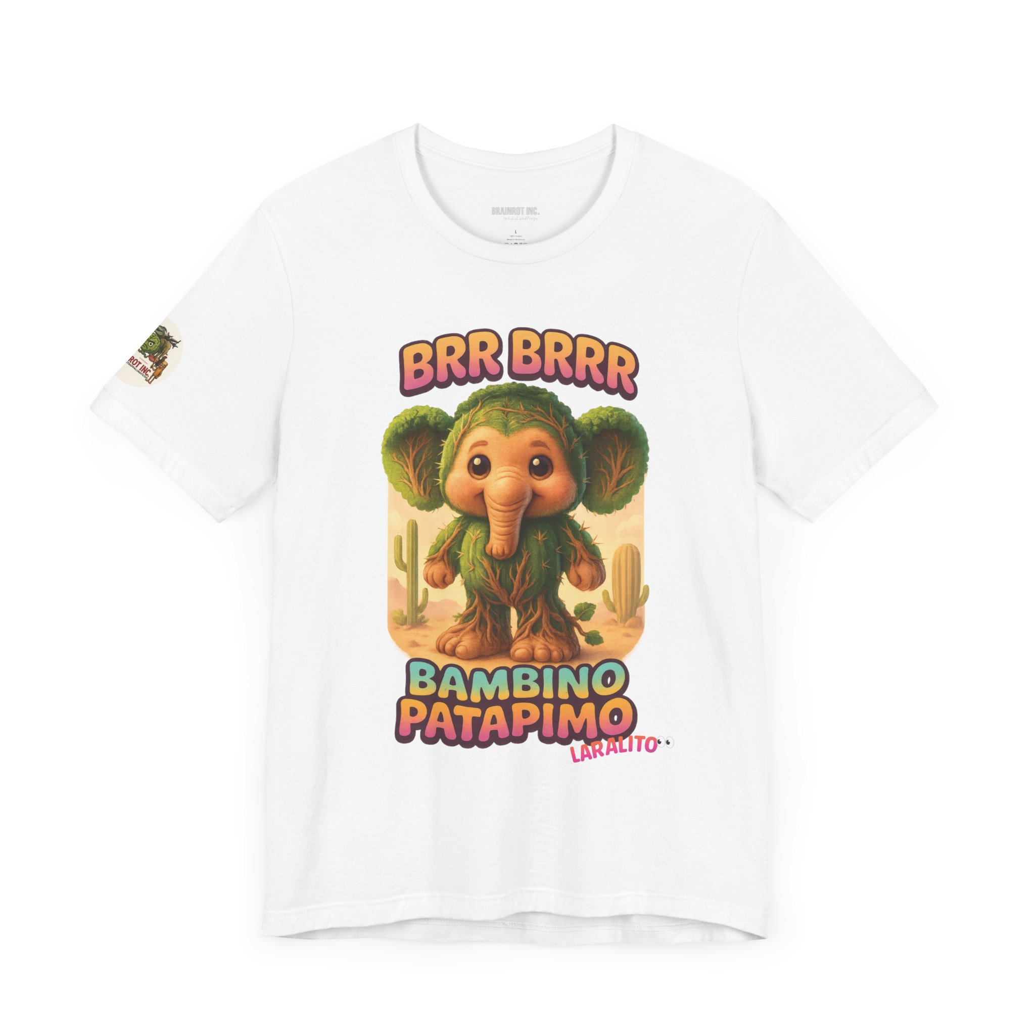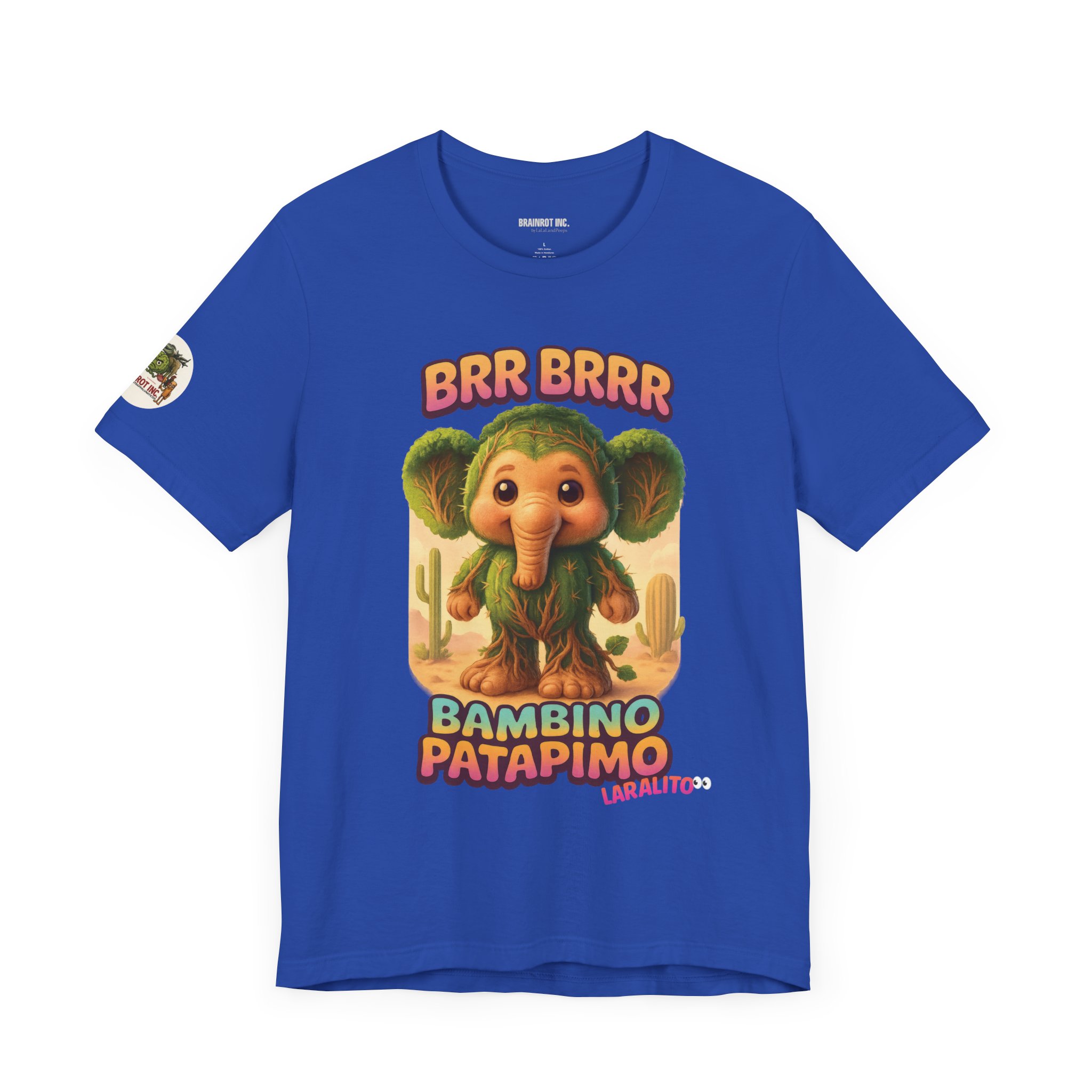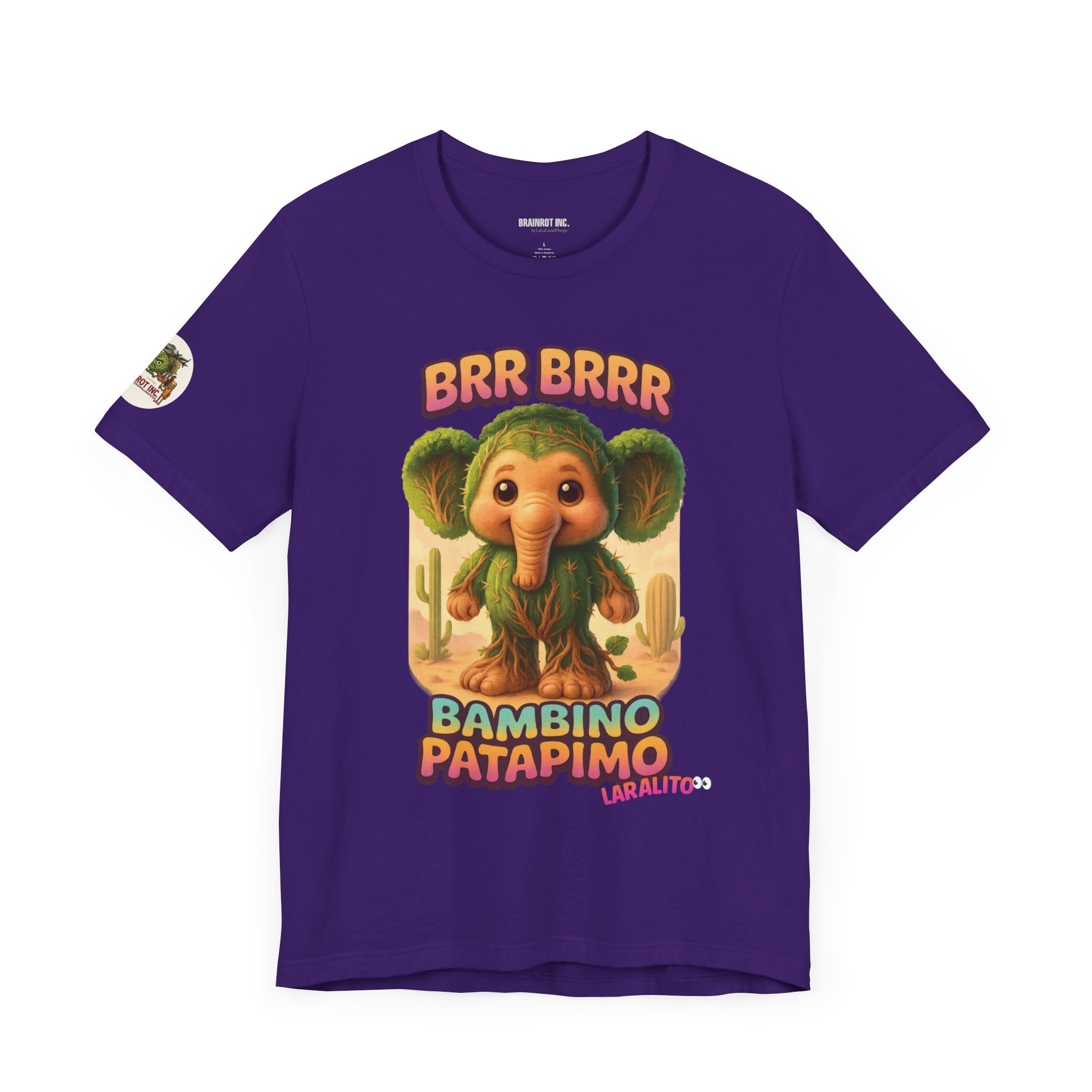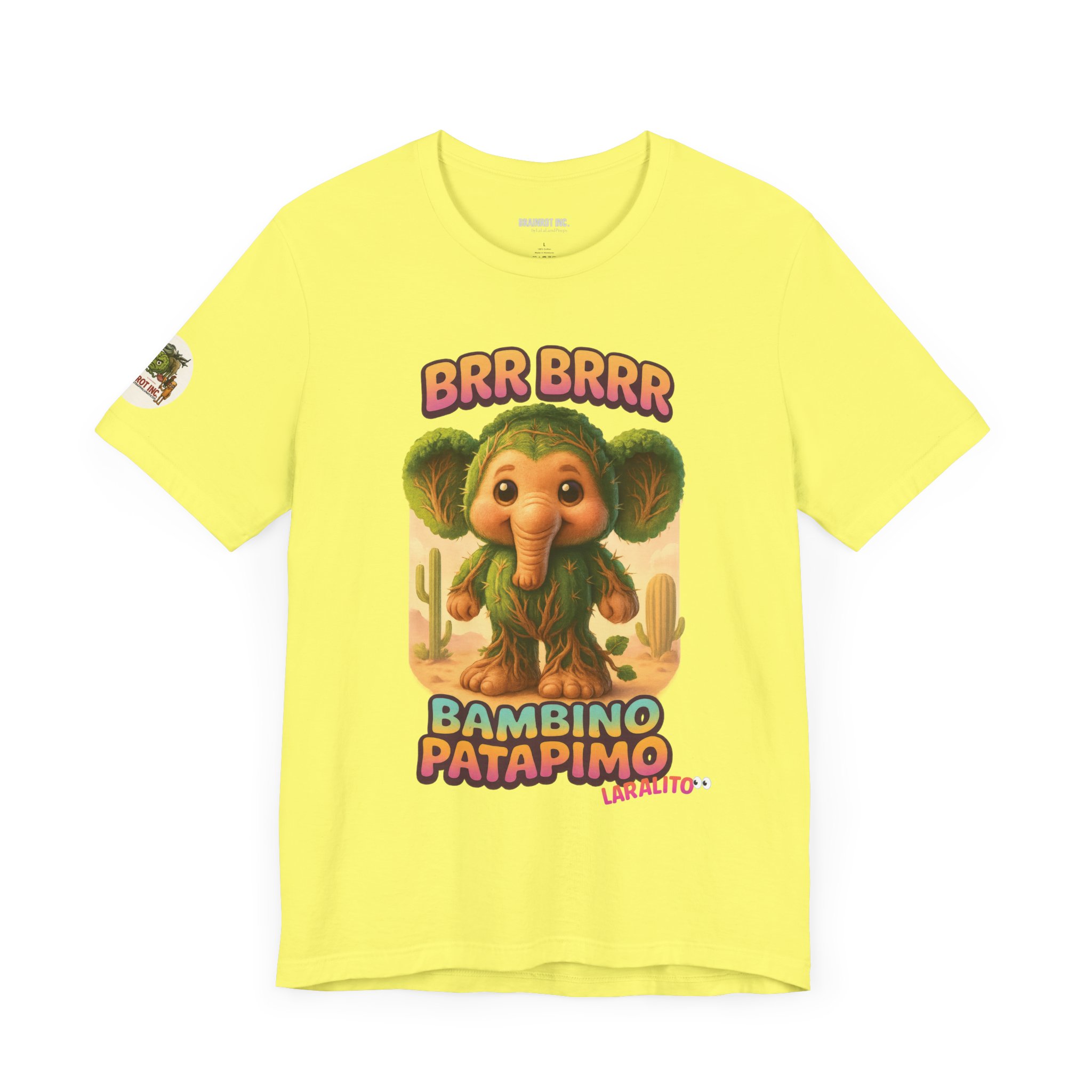 Now reborn as BAMBINO PATAPIMO, this time-warped desert elephant-cactus hybrid patrols the sand realms in a wooden sandal, spreading joy and BRR BRRR sounds to all who dare sleep in.