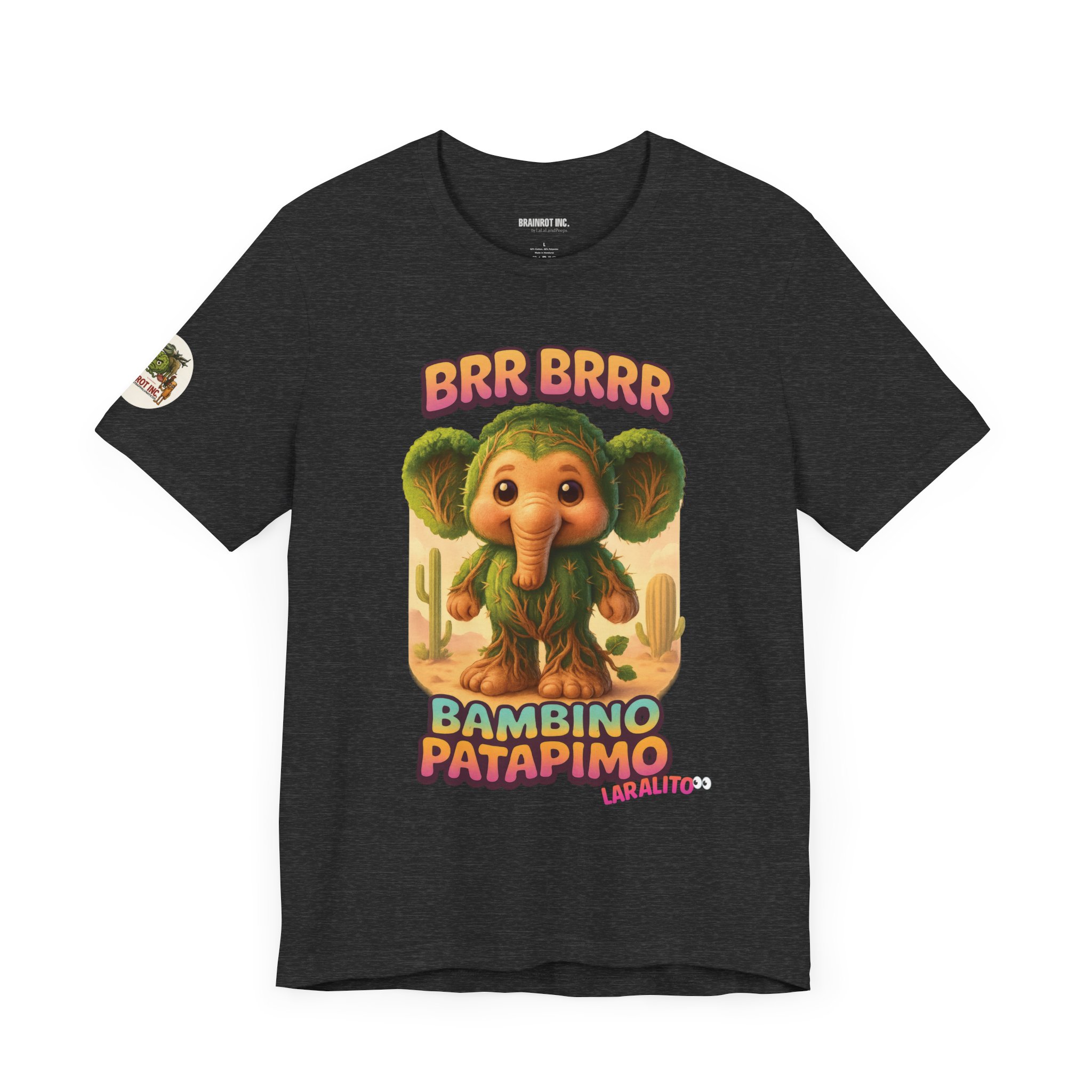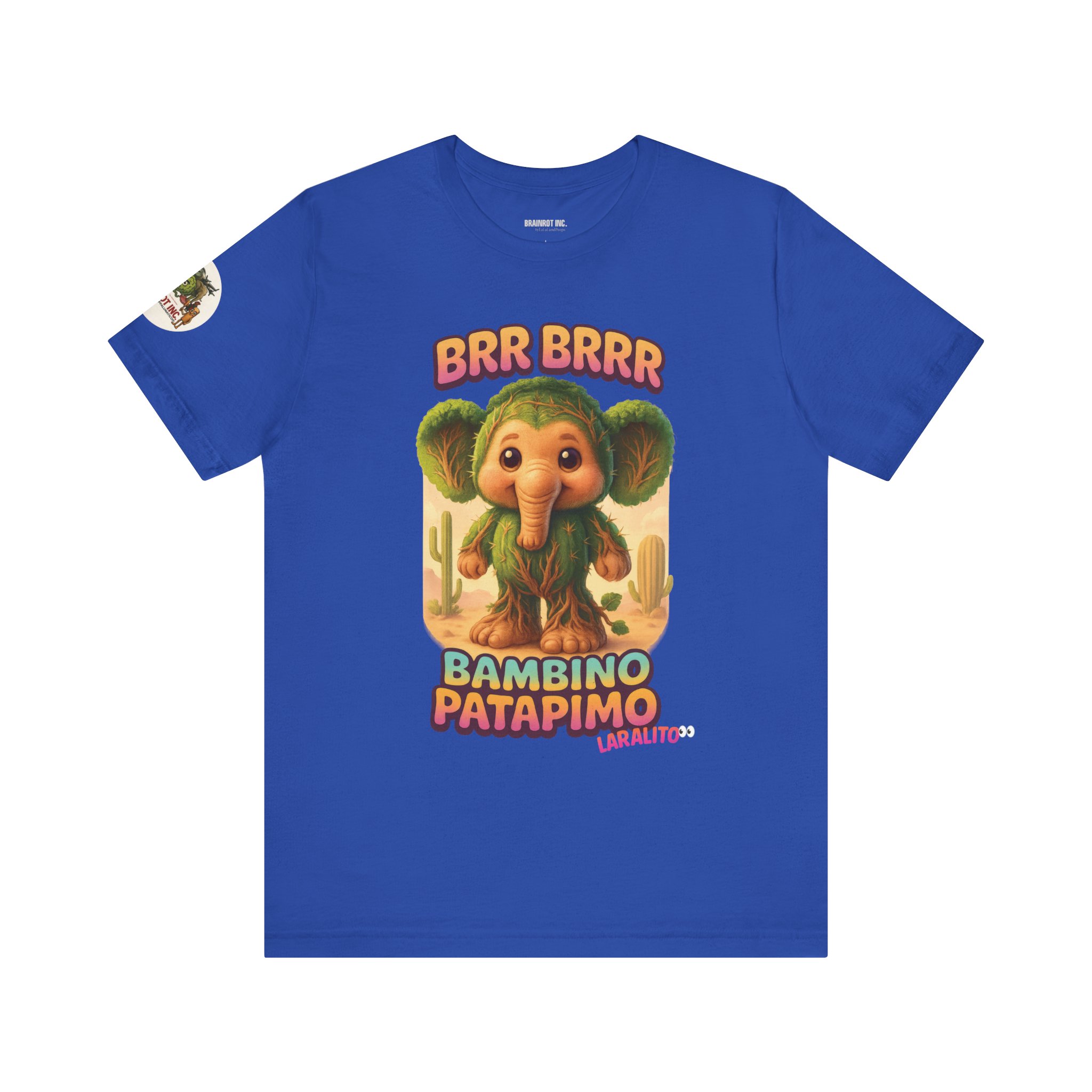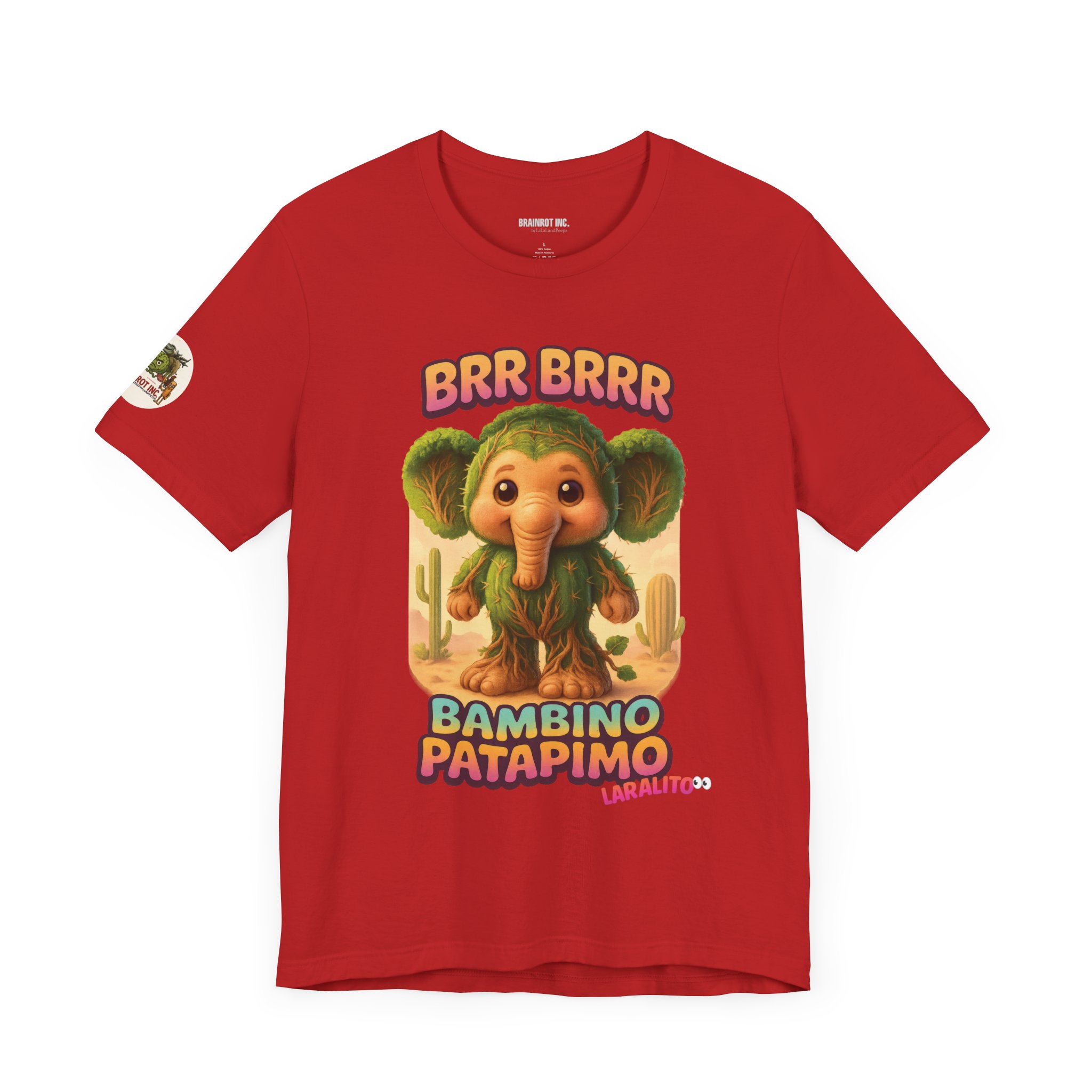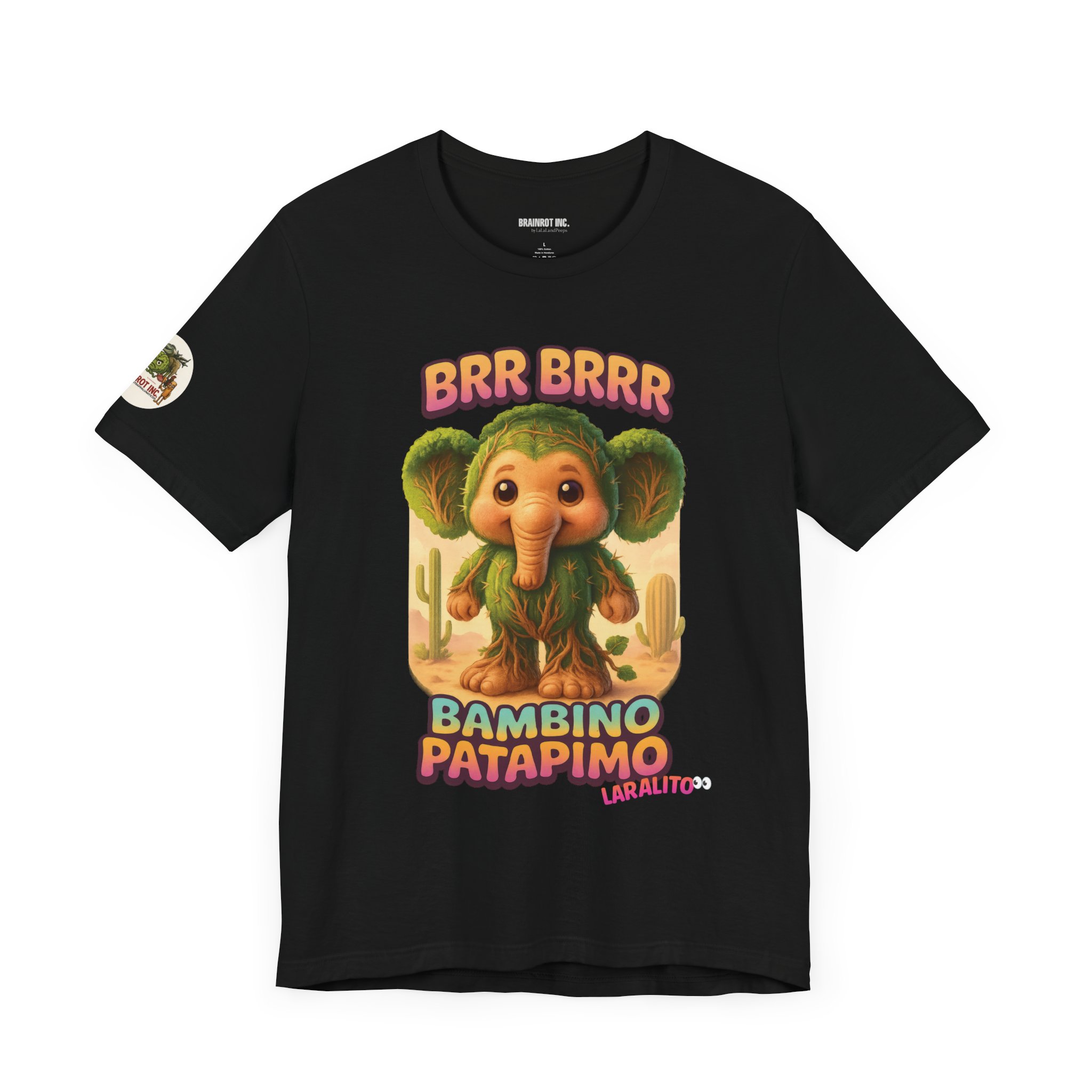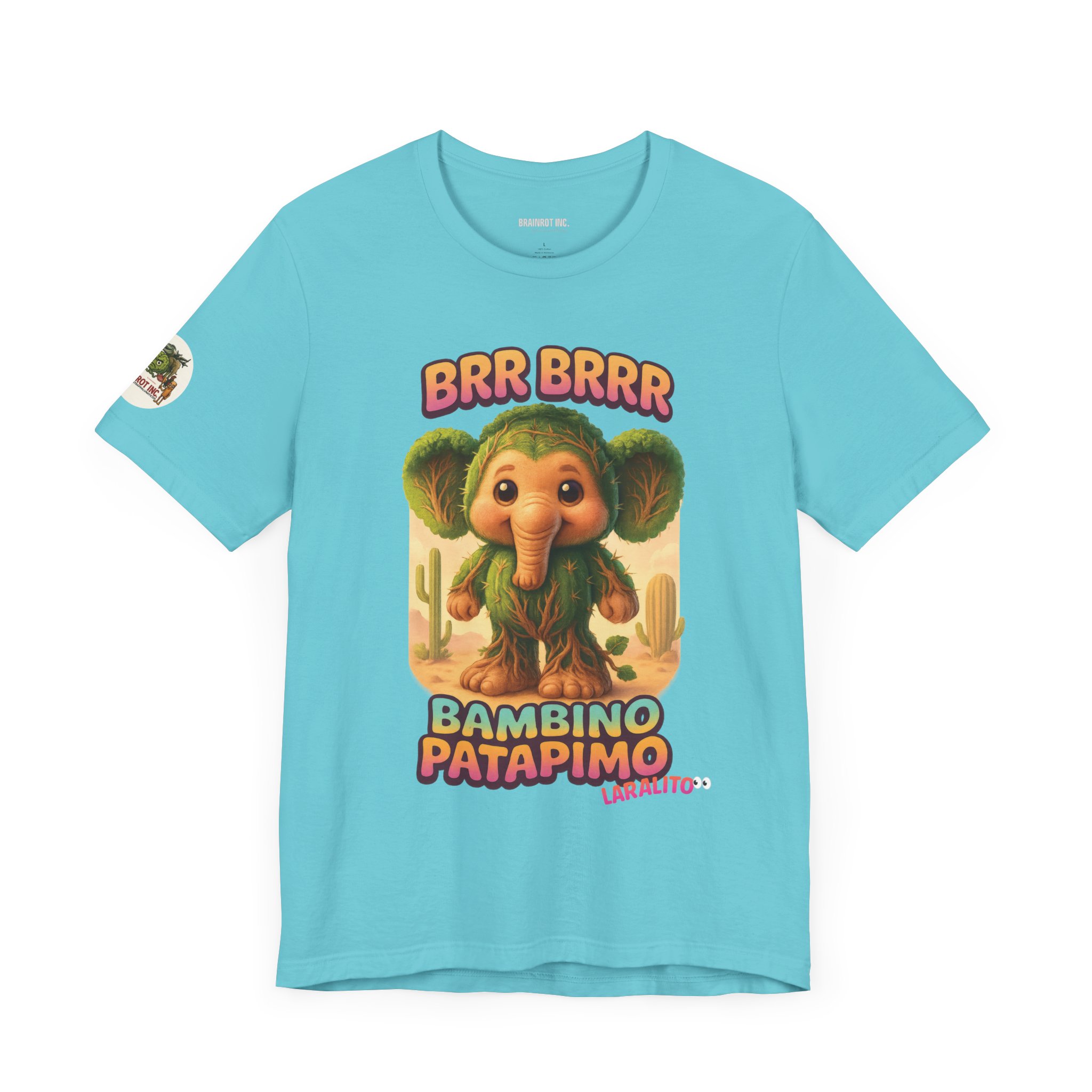 Now reborn as BAMBINO PATAPIMO, this time-warped desert elephant-cactus hybrid patrols the sand realms in a wooden sandal, spreading joy and BRR BRRR sounds to all who dare sleep in.