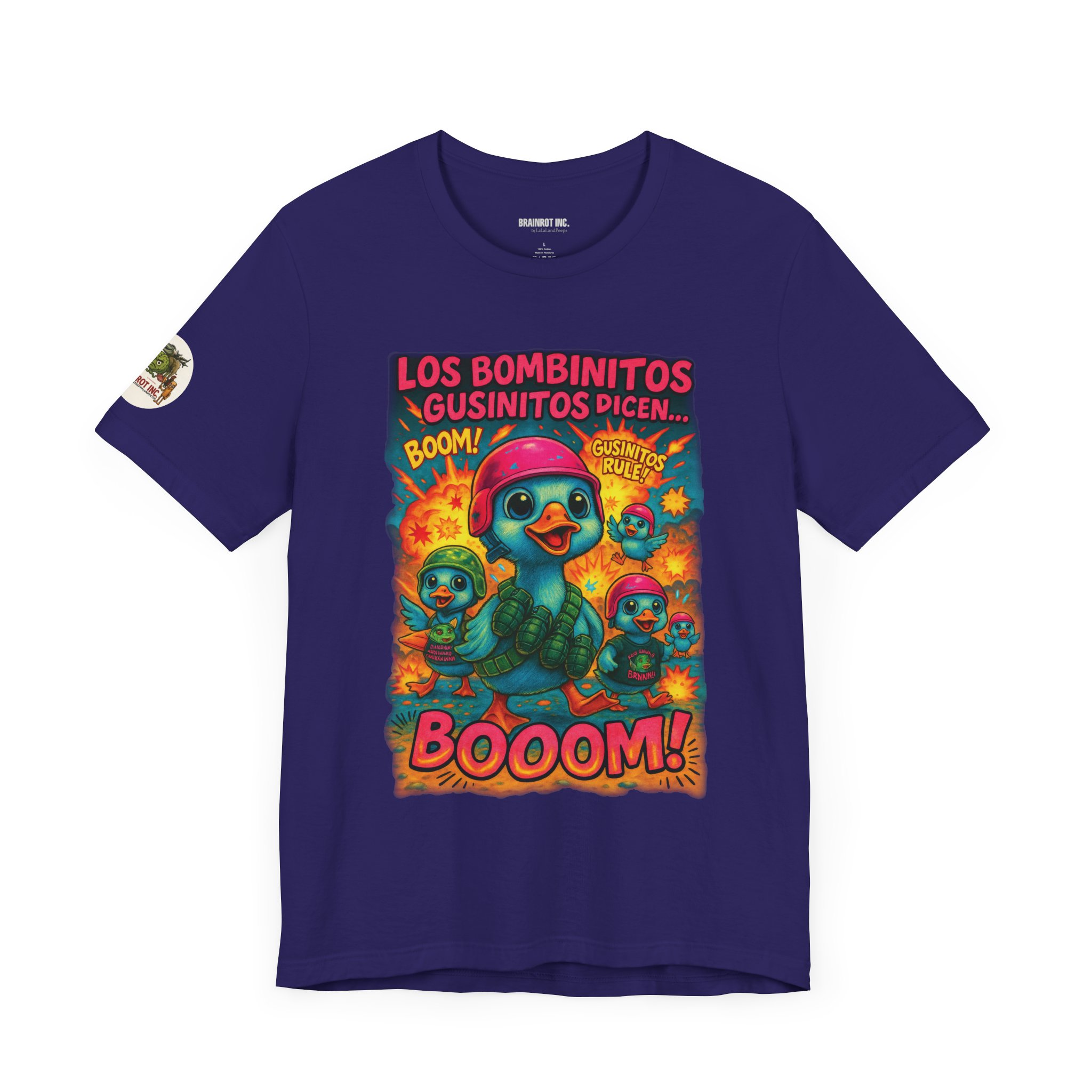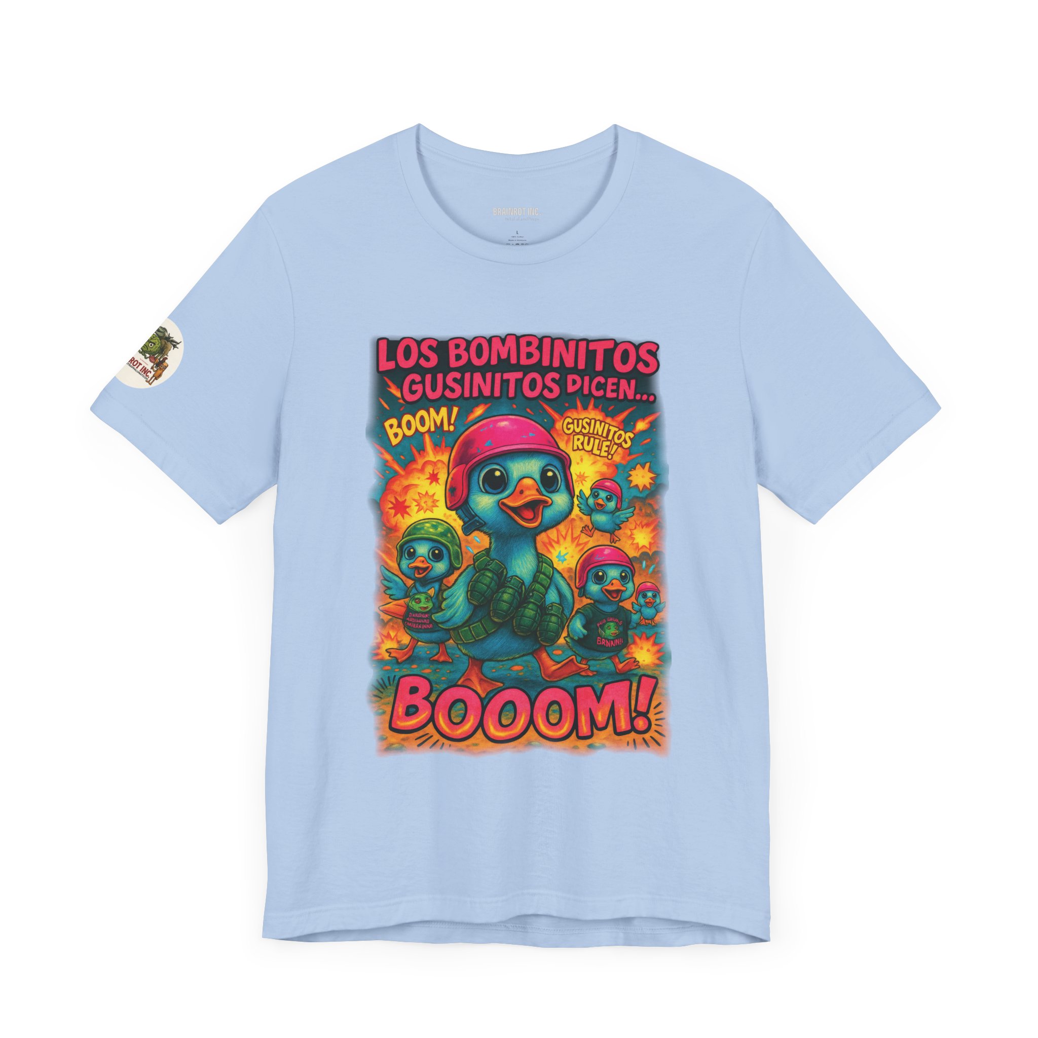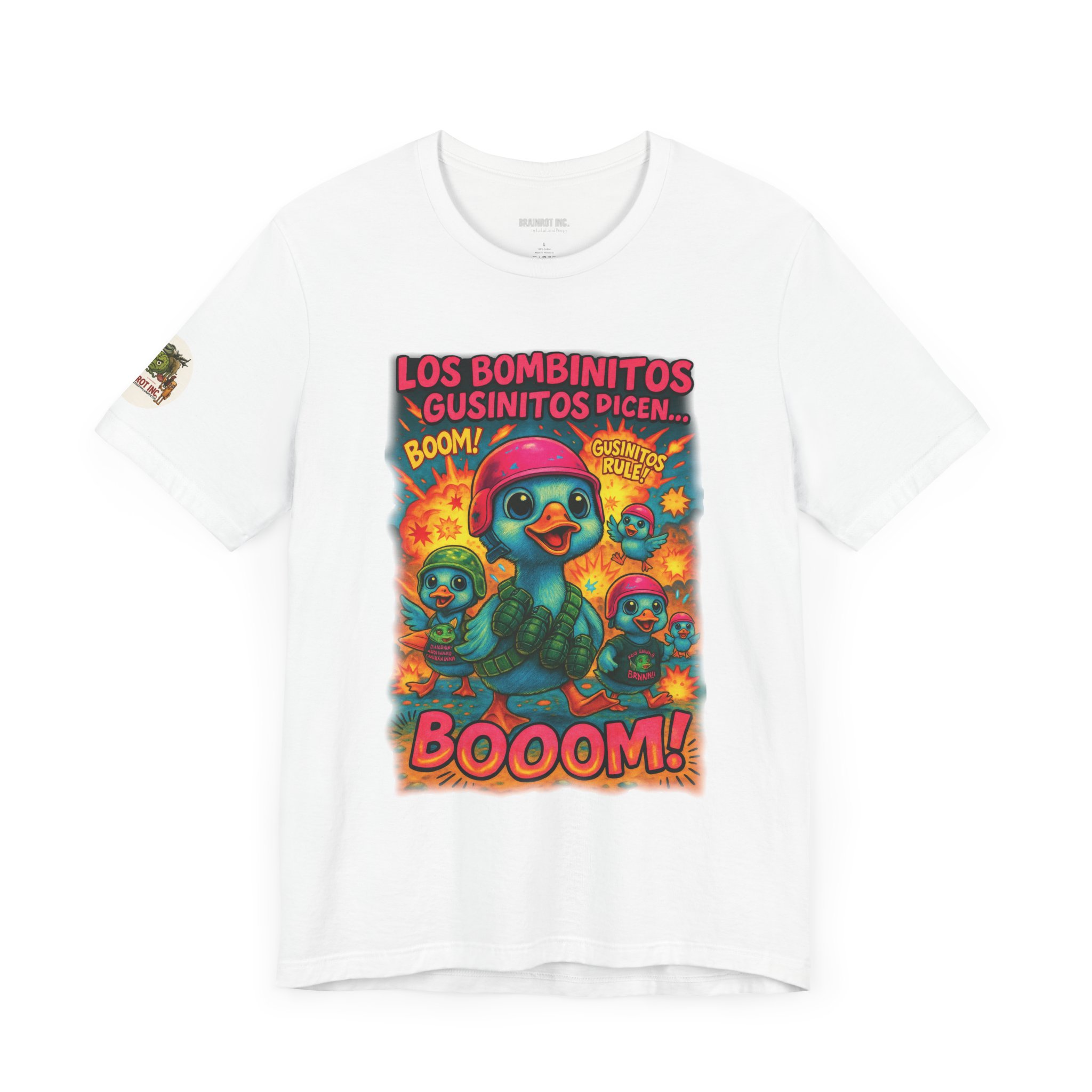 Deployed from the pastel barracks of Infantría Infantis, the Bombinitos Gusinitos Squad marches with wide eyes, high-pitched quacks, and full payloads of tactical adorabombing. Their catchphrase “BOOOM!” isn’t just a sound — it’s a doctrine. Armed with grenades, slogans, and disturbingly perfect teamwork, they’ve brought chaos to beaches, nurseries, and meme forums alike. GUSINITOS RULE! isn’t a sticker — it’s a war cry.