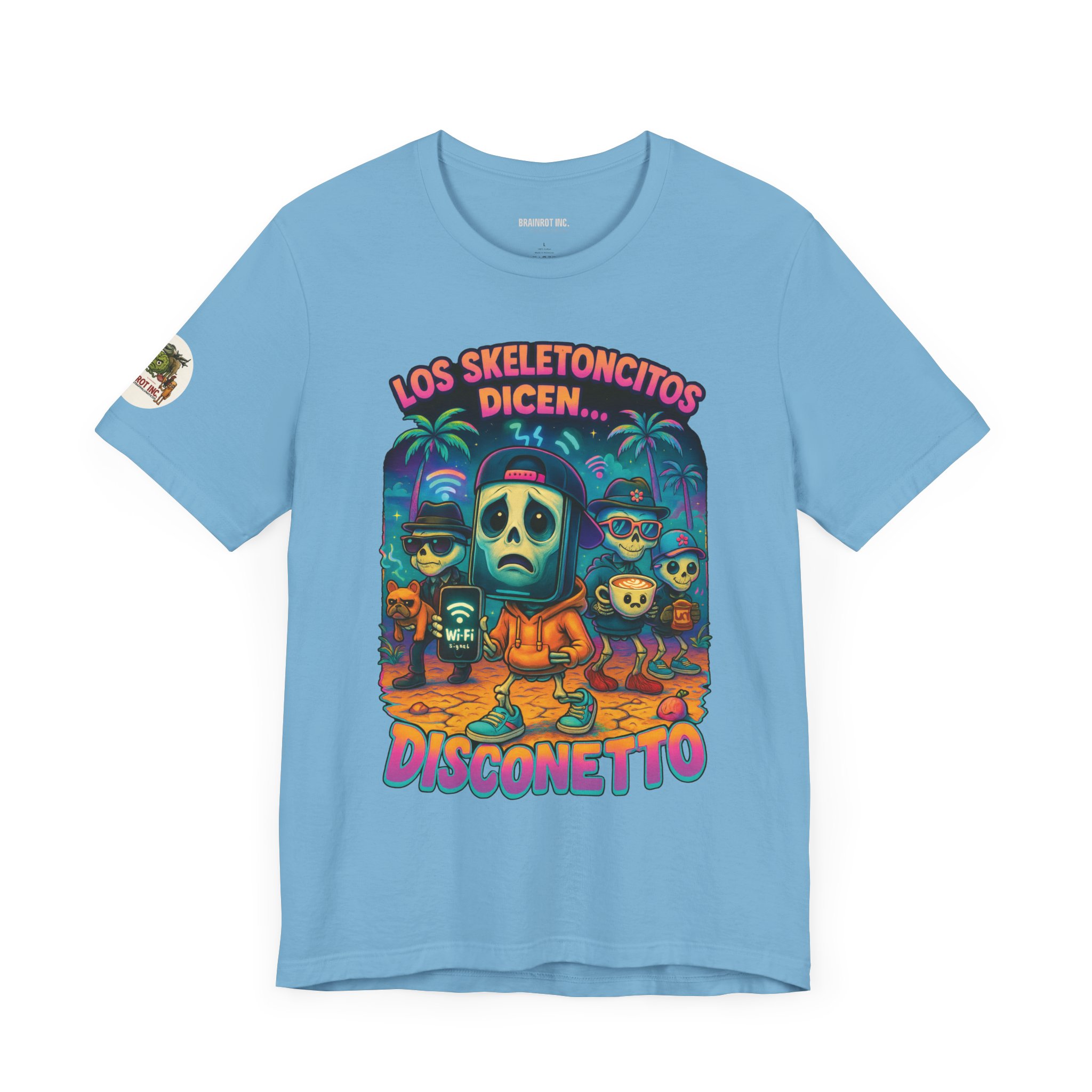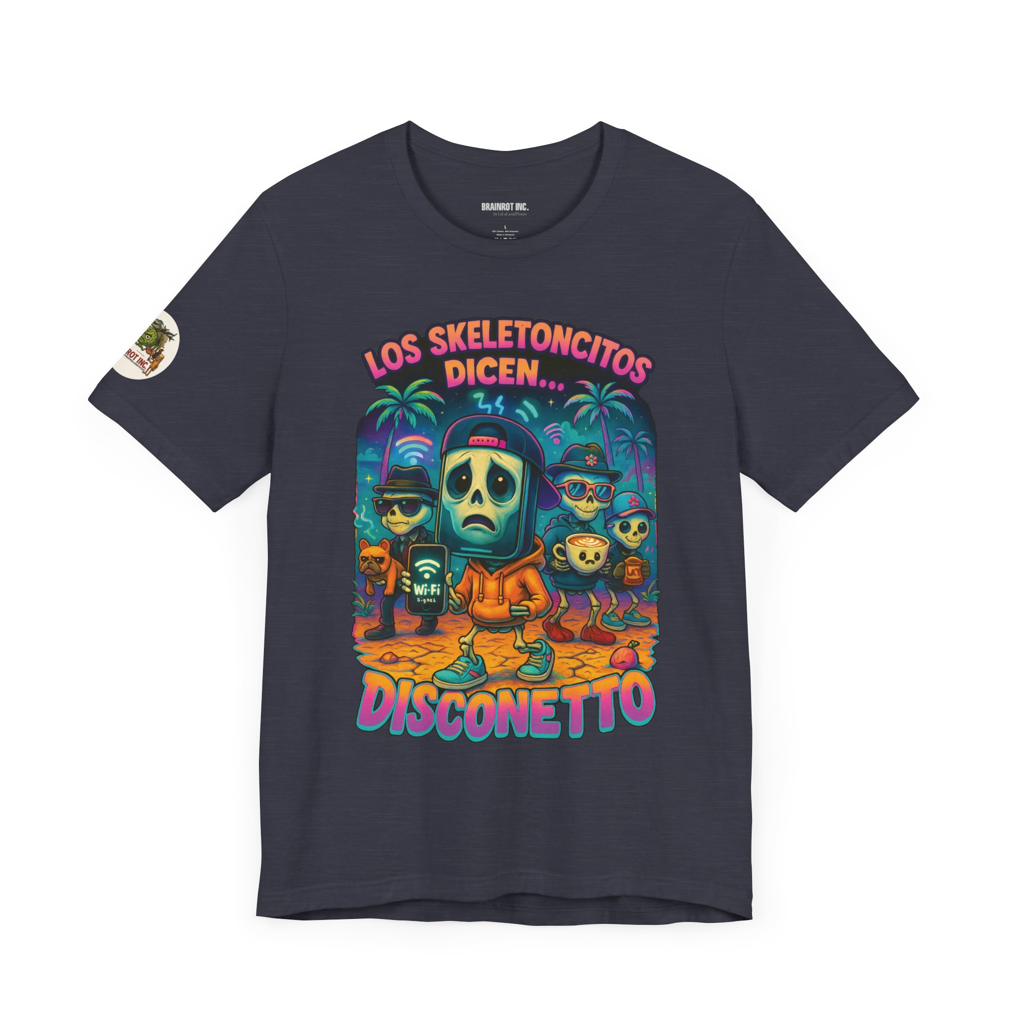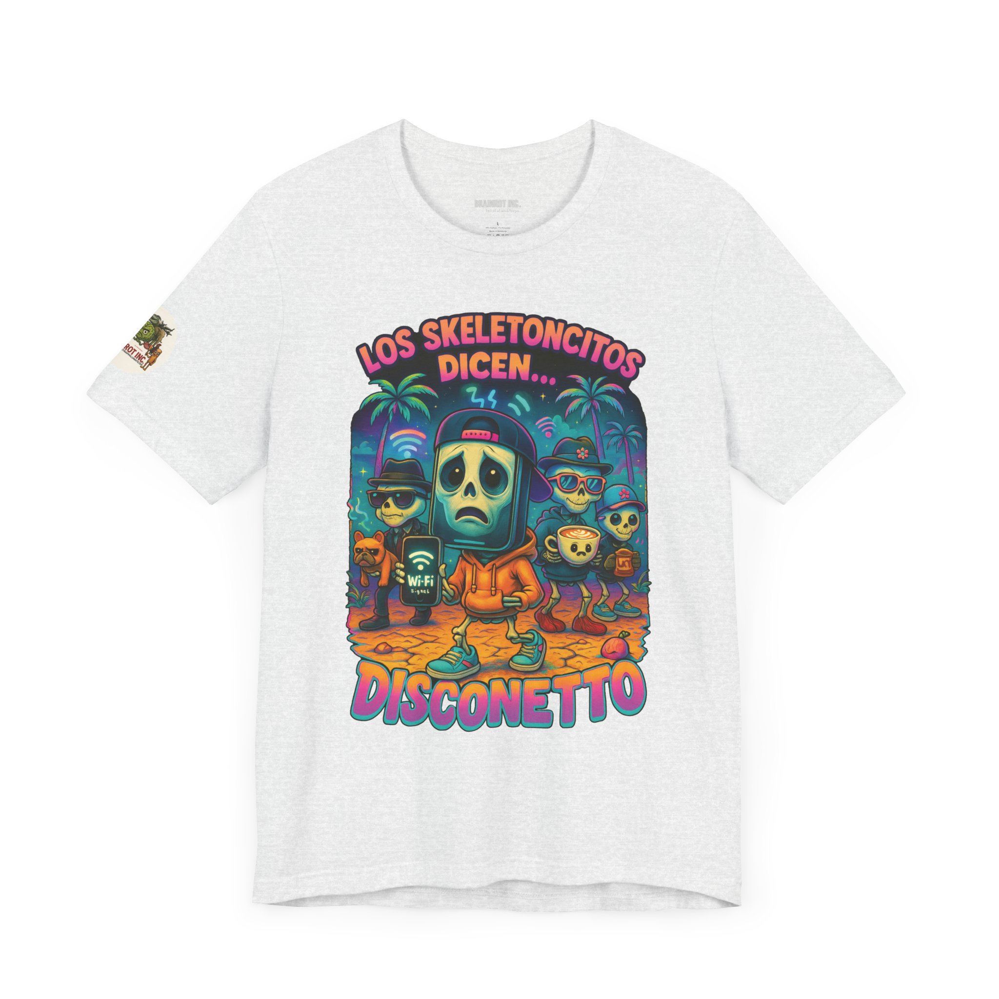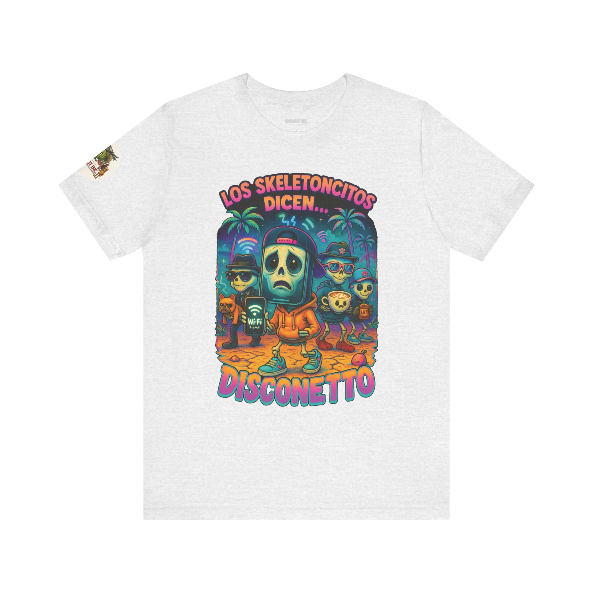 When the sacred signal drops and the spinning wheel of doom appears, Los Skeletoncitos rise from the digital ashes — phantoms of the Wi-Fi void. Trapped in paradise with zero bars, they wander the earth wearing sadness like a hoodie, begging routers for mercy. “DISCONETTO…” they whisper, as the group chat fades and memes refuse to load. No hotspot. No hope. Only despair and drip.
