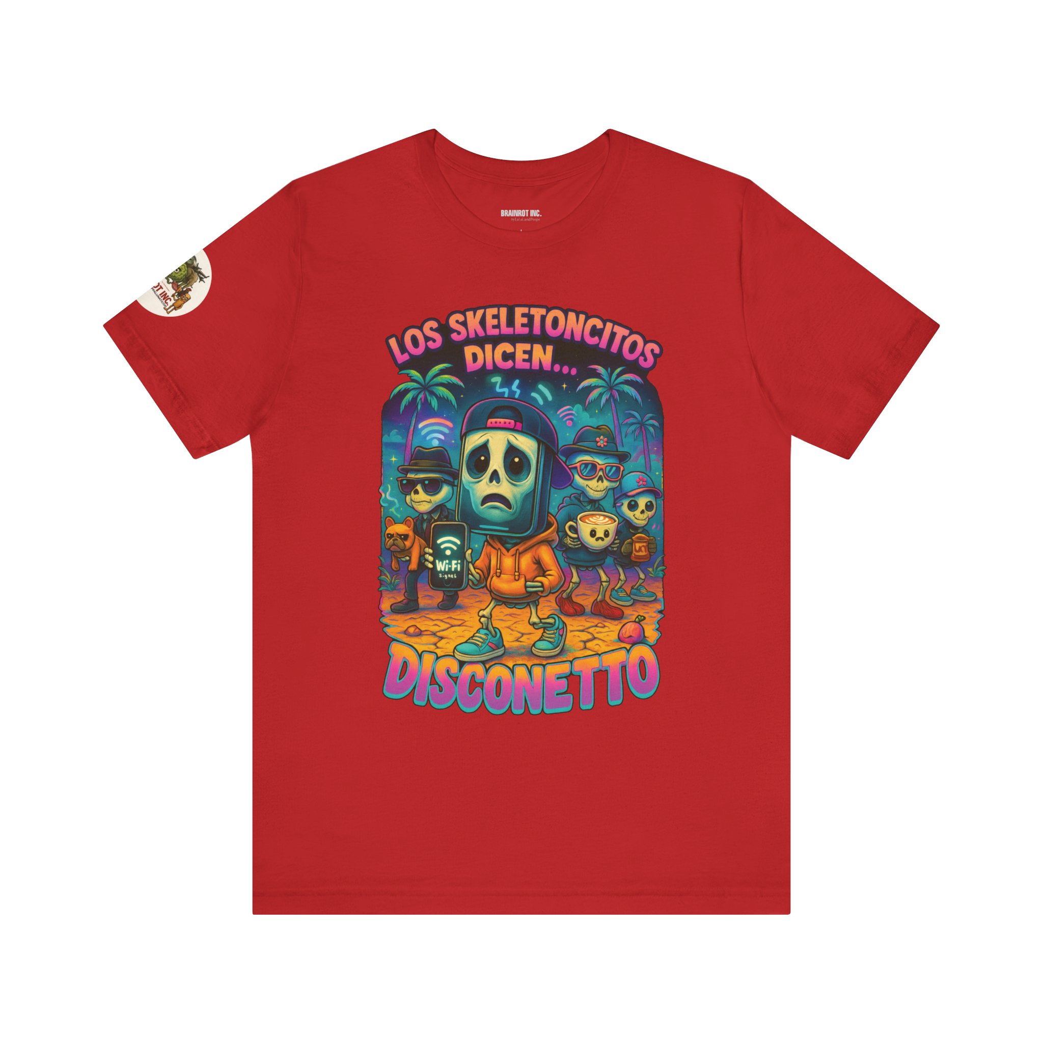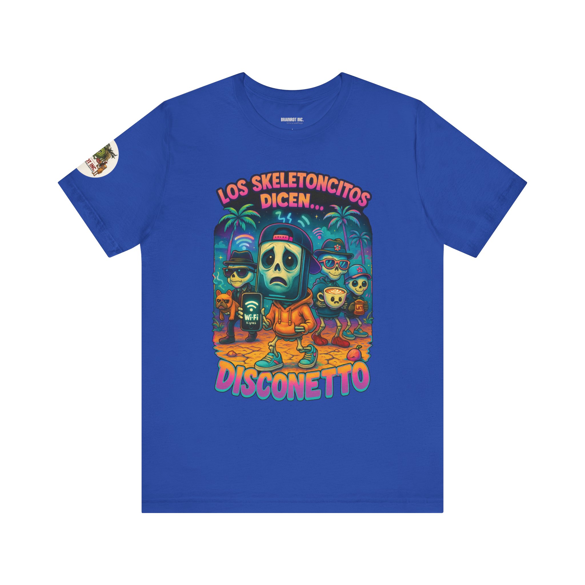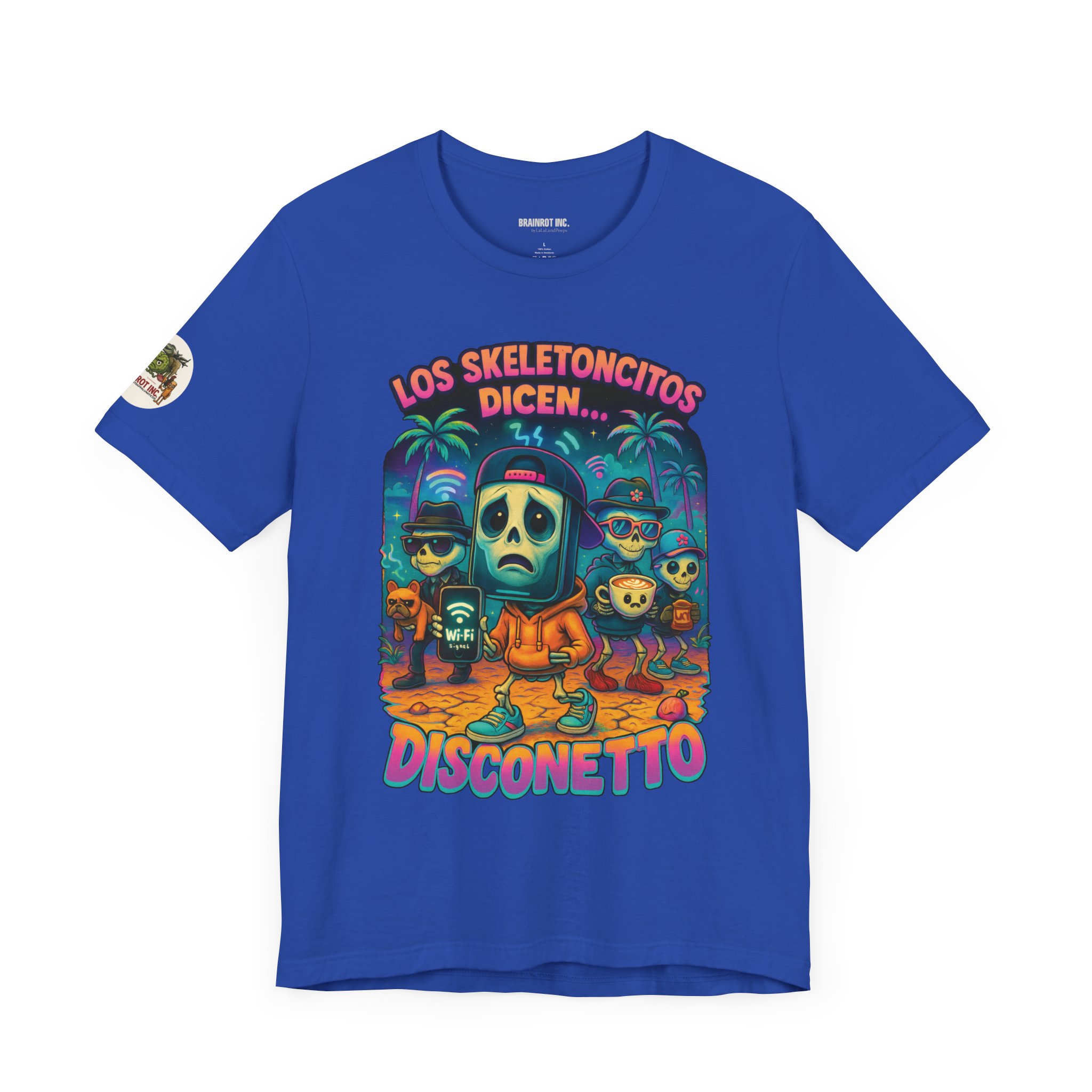 When the sacred signal drops and the spinning wheel of doom appears, Los Skeletoncitos rise from the digital ashes — phantoms of the Wi-Fi void. Trapped in paradise with zero bars, they wander the earth wearing sadness like a hoodie, begging routers for mercy. “DISCONETTO…” they whisper, as the group chat fades and memes refuse to load. No hotspot. No hope. Only despair and drip.
