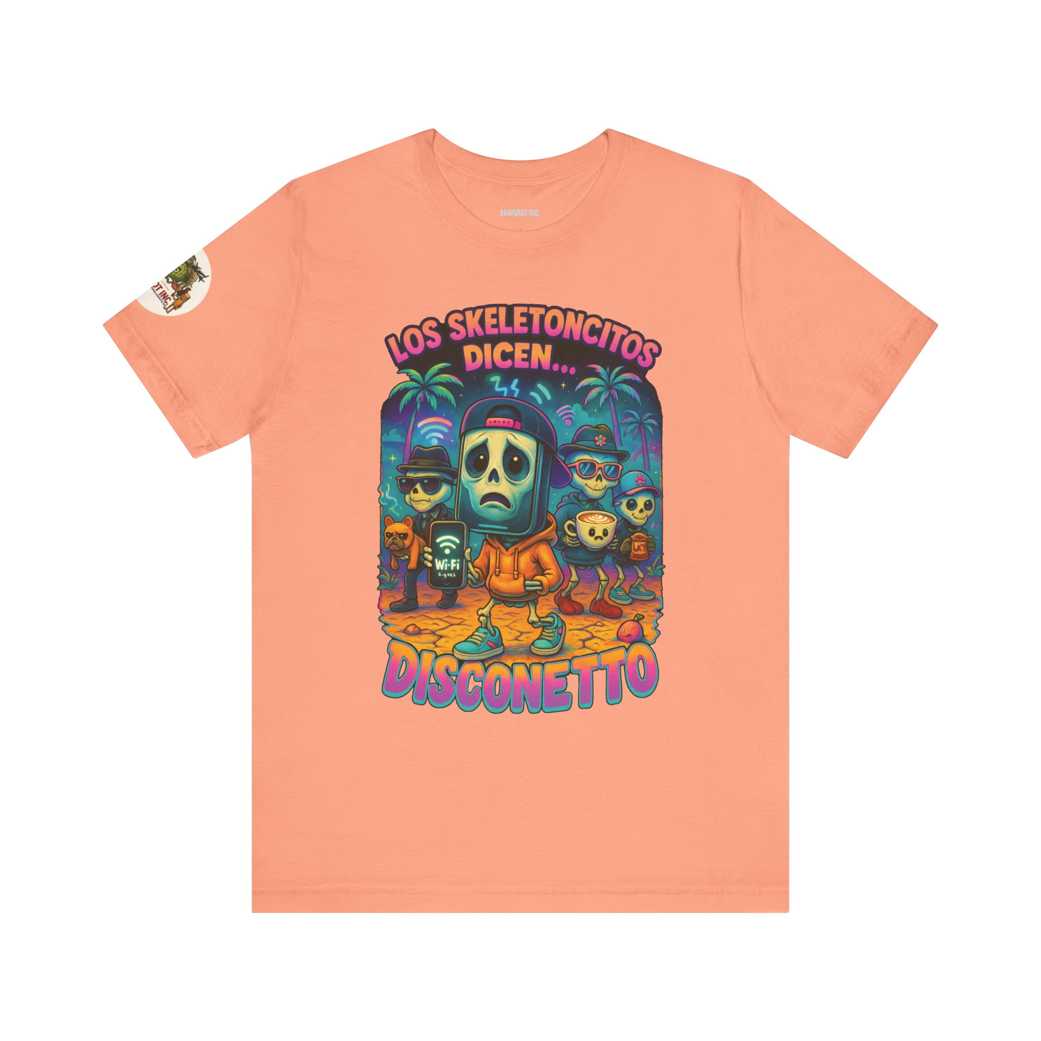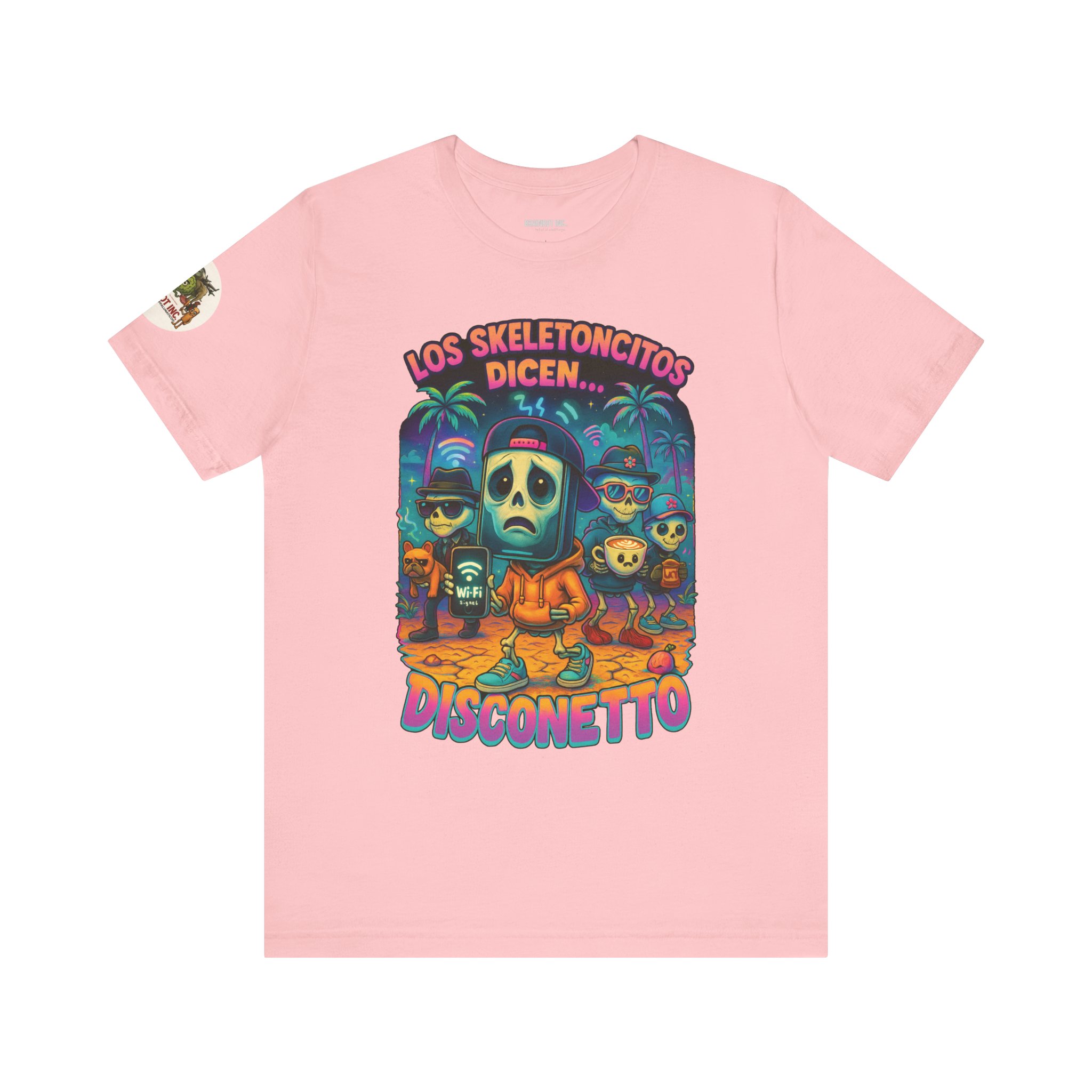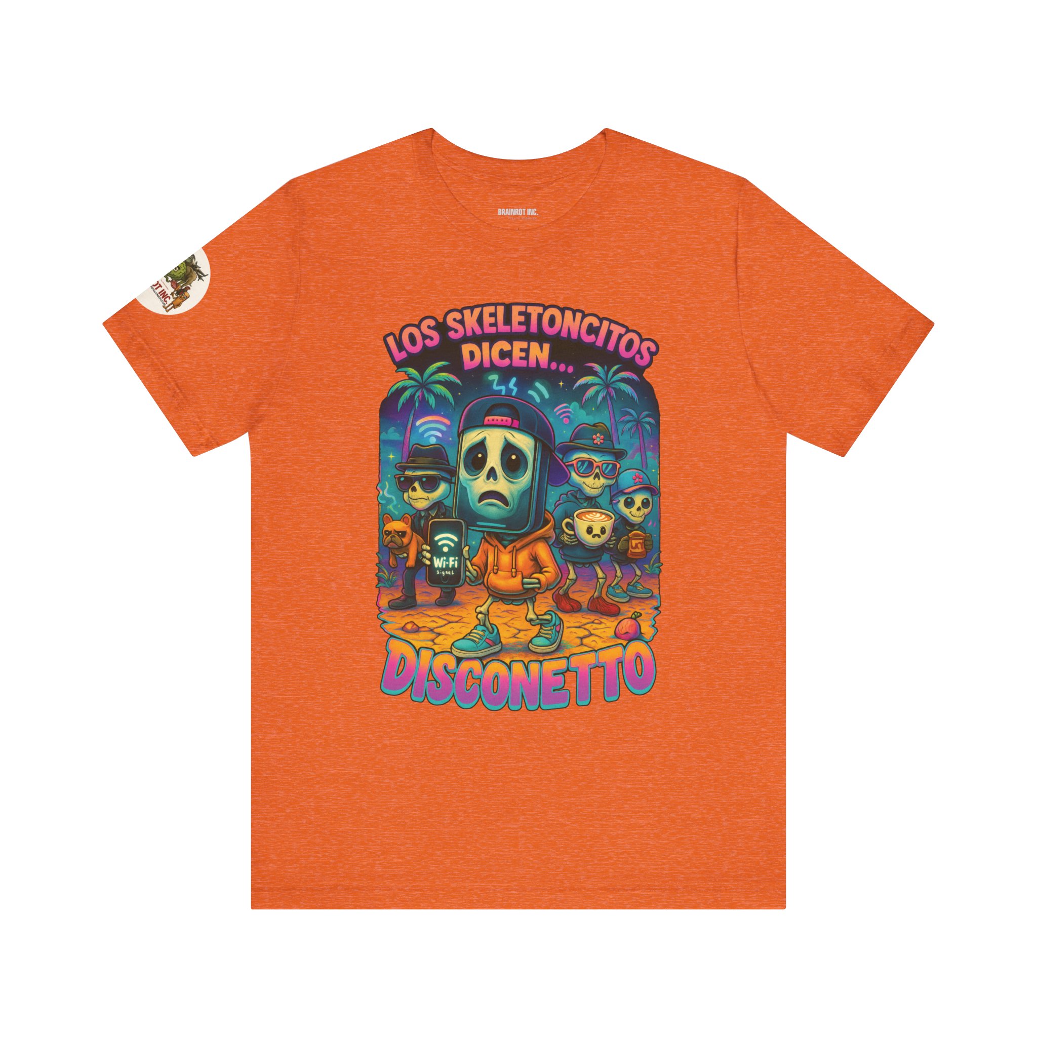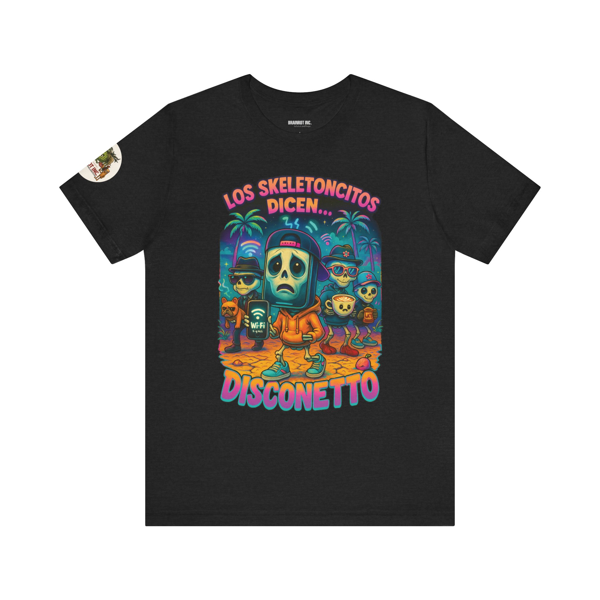 When the sacred signal drops and the spinning wheel of doom appears, Los Skeletoncitos rise from the digital ashes — phantoms of the Wi-Fi void. Trapped in paradise with zero bars, they wander the earth wearing sadness like a hoodie, begging routers for mercy. “DISCONETTO…” they whisper, as the group chat fades and memes refuse to load. No hotspot. No hope. Only despair and drip.