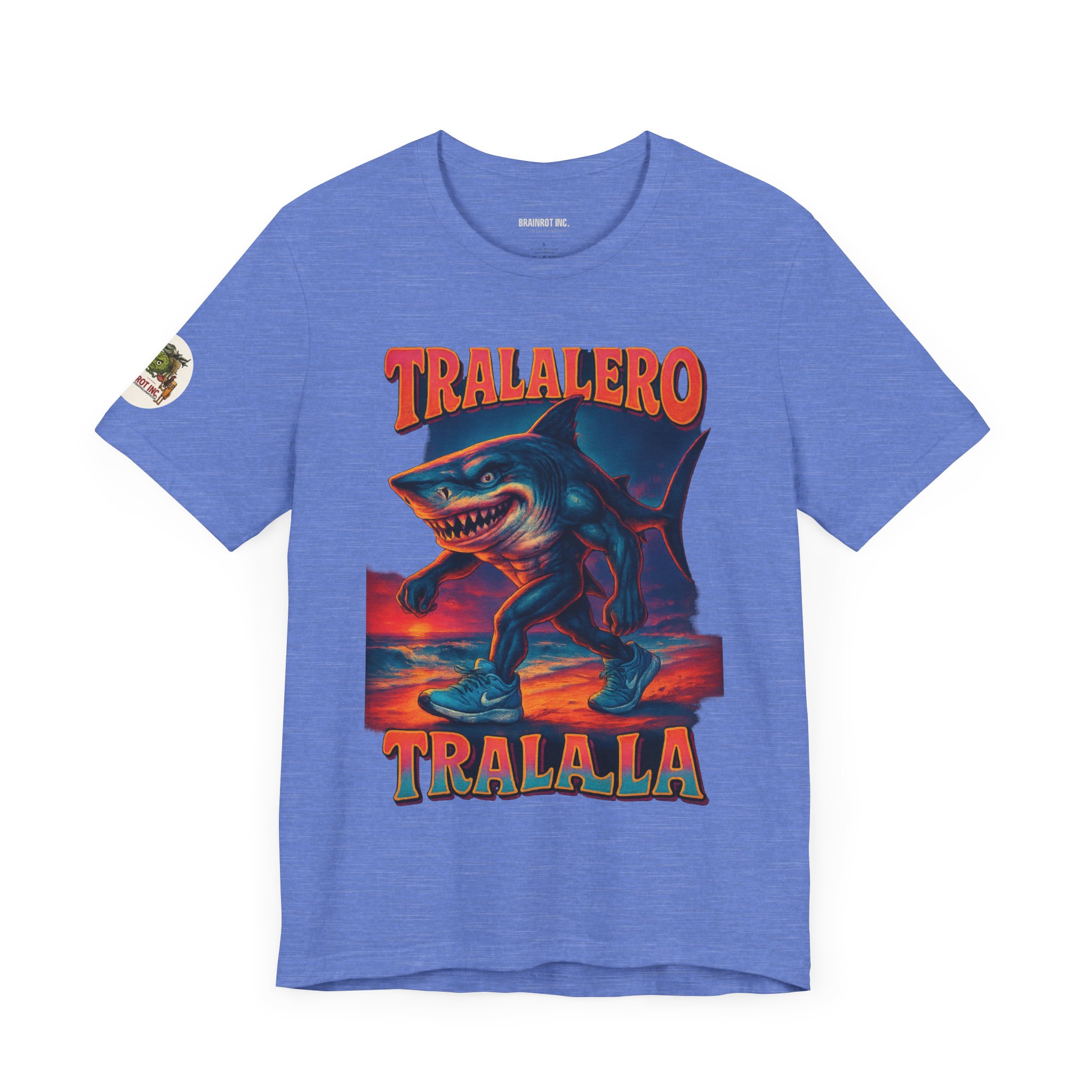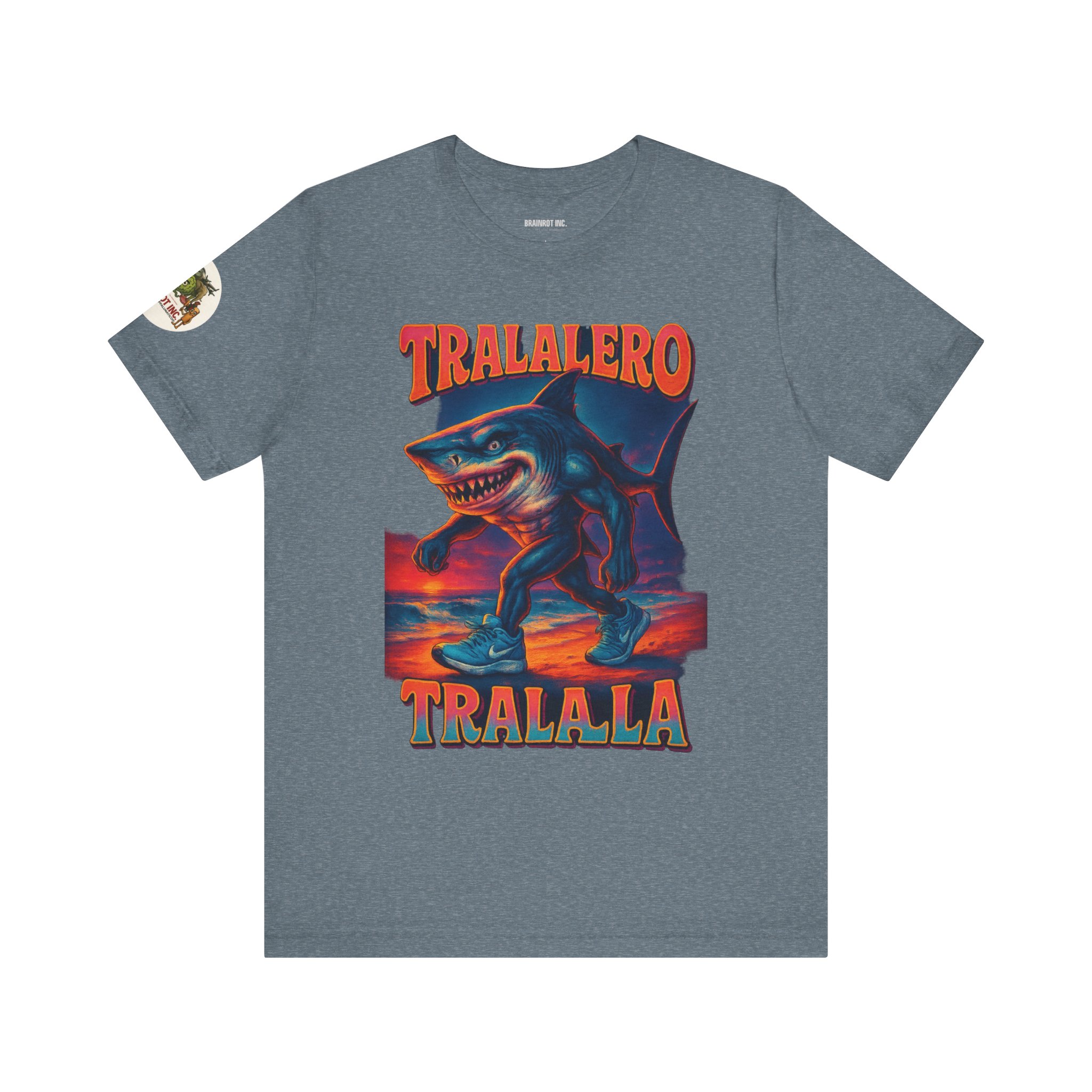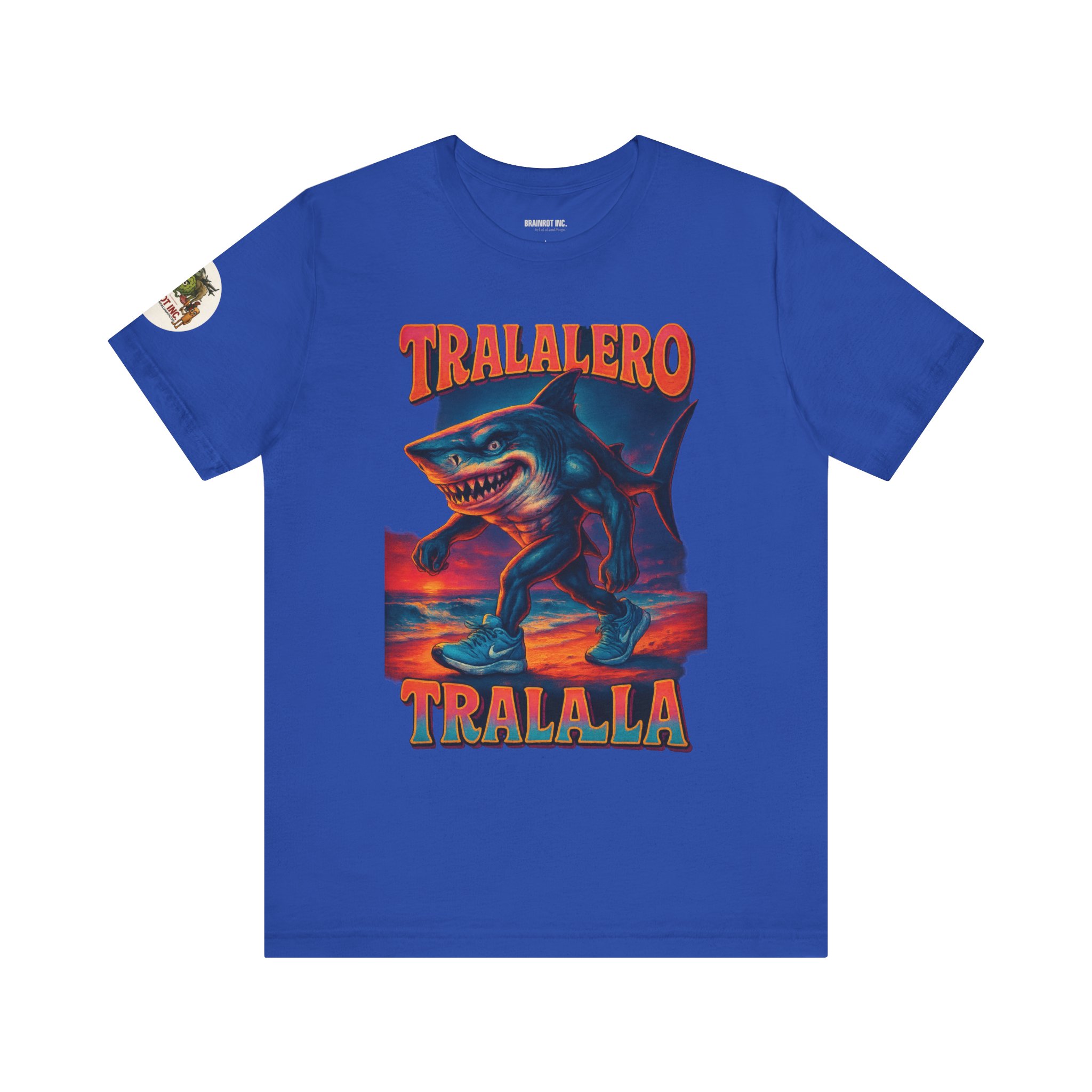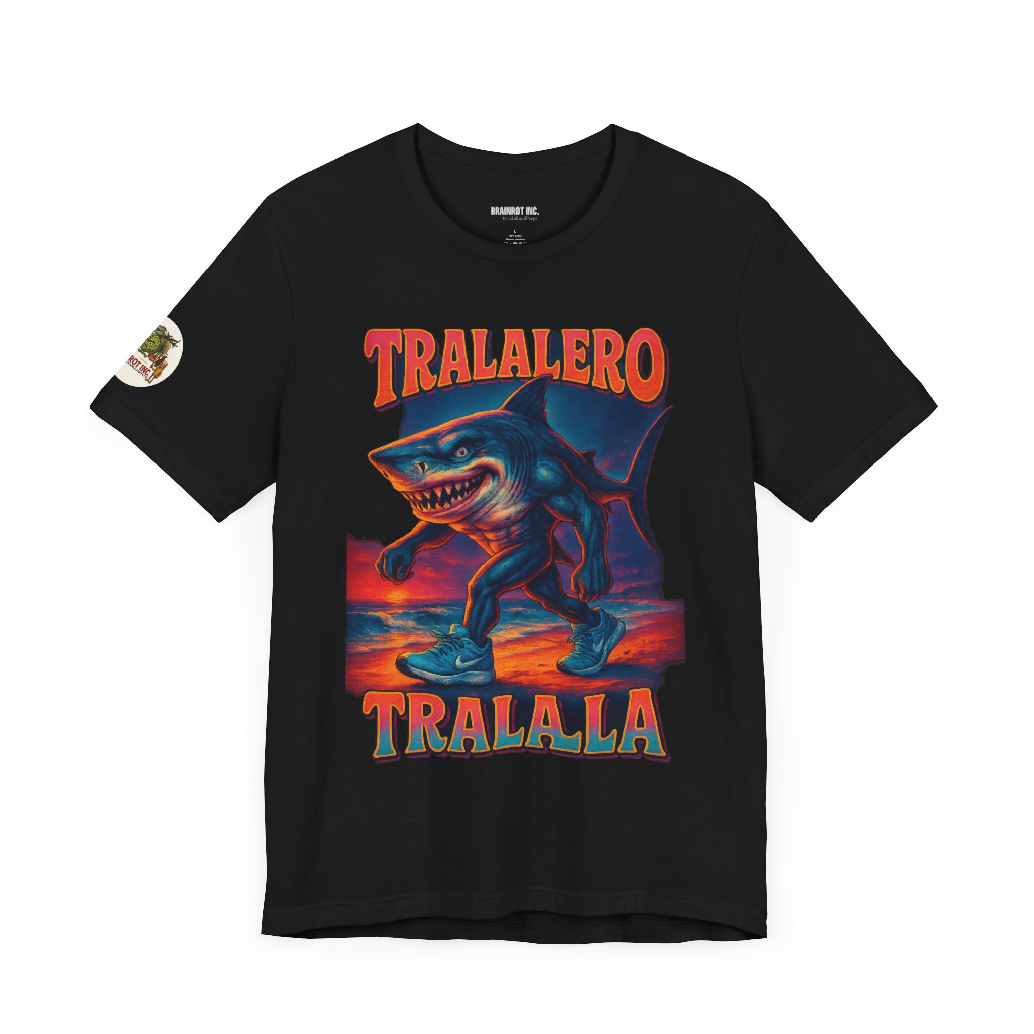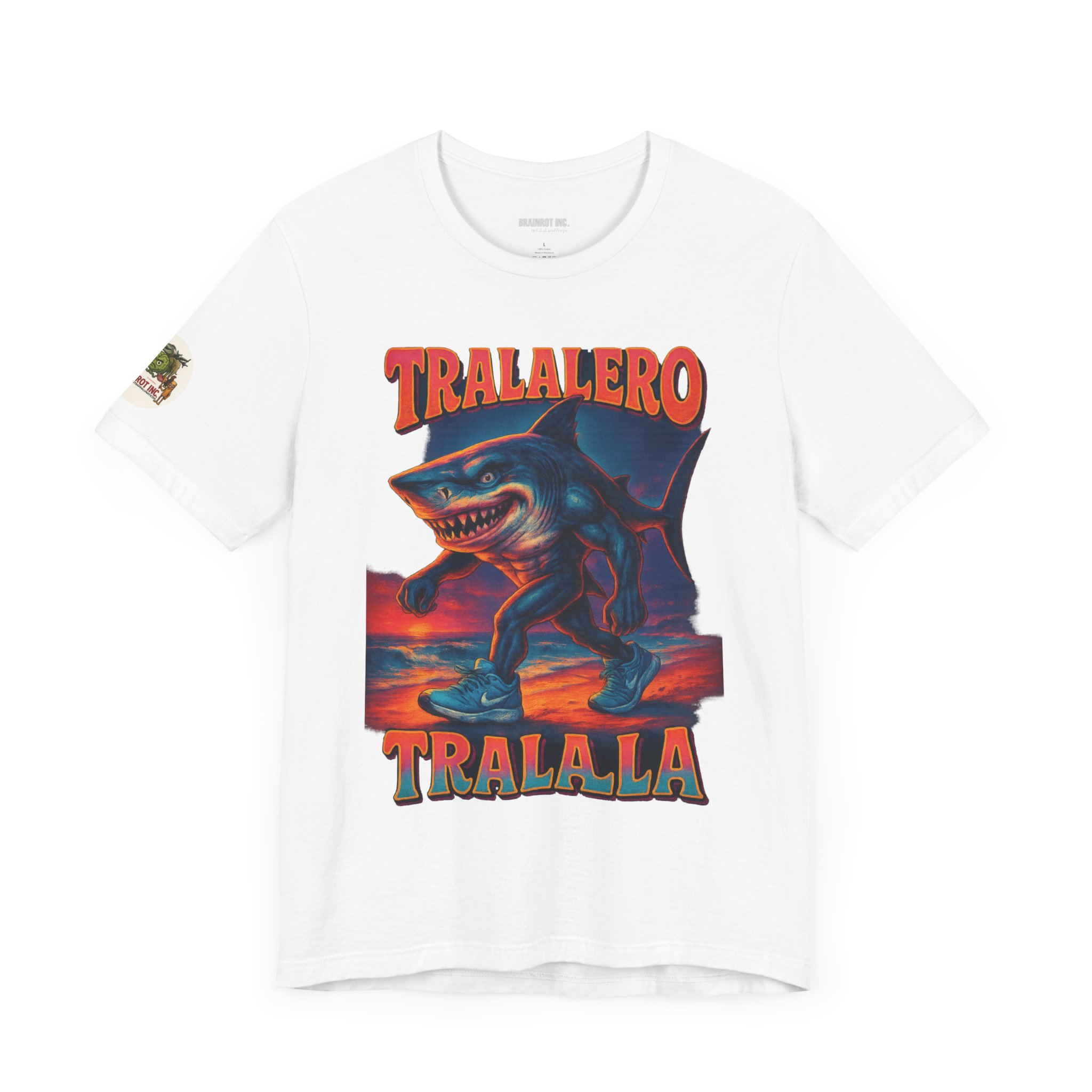 Introducing TRALALERO TRALALA – Walk in the Bech Edition™, the apex beach predator who skips leg day for absolutely no one. Equal parts menace and drip, this design channels a sunset-stained nightmare from the depths of the meme ocean and walks it right up your timeline in size 12 sneakers.